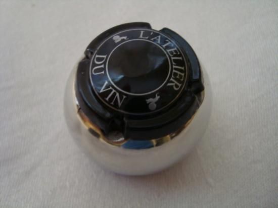L 'Atelier du Vin Champagne Stopper, solid pewter cork cap from France. This French solid pewter cork caps caps efficiently your opened Champagne bottles. We ship from Texas (not from France)