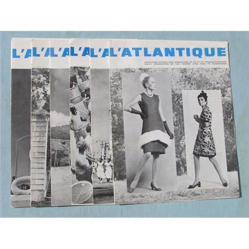 6 copies of L'Atlantique magazine which is the daily newspaper of the SS France from the Gaiete Parisienne Cruise. Each of these are full of information on the ports of call. Also tons of ads for everything from watches to liquor. One of them has an entire spread on Haute Couture of Paris. Covers Dior, Givenchy, Ricci, Venet, Patou, and Molyneix with their new fashions pictured. There are no marks or writing in any of these, even the crossword puzzles are clean! Such a fabulous collection!!