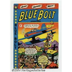 <B>L. B. Cole - Blue Bolt #102-104 Cover Proof Group (Star Publications, 1949-50).</B></I> Here's another fabulous offering of prized L. B. Cole comic cover proofs, this time for <B>Blue Bolt</B></I> #102-104. These proofs were prepared before actual printing as a way to check the printed inks against a hand-colored mock-up prepared by the artist. After being approved by the artist, art director or editor, these proofs were most often trashed, which makes these examples quite a rarity. <I>NOTE: these are the FRONT COVERS ONLY, not the entire comic books</B></I>. 3 items <BR><BR><B>Important notice:</B> Heritage usually auctions material at the rate of 200-250 lots per hour. On some occasions eBay Live bid software or the Internet may not be able to keep up with the pace of the auction. We recommend placing a realistic absentee bid now as insurance to avoid disappointment. Occasionally the auctioneer may eliminate or reject an eBay Live bid, and the auctioneer may also reopen a lot after the close of the eBay live bidding (usually because we missed an audience bid), and may reject your bid even if it shows you as the winning bidder. By bidding via eBay Live, you agree that Heritage may award the lot to another bidder at its sole discretion under the circumstances described above or any other reasonable circumstances. Since eBay bids are not shown to us until we open the lot on the floor, we treat those bids just like floor bids. In most cases the floor responds before the eBay bid is presented to us, due to Internet lag time, so for consistency we have made it a policy that floor bids are always considered first over tie eBay live bids. Also please note that all Heritage lots purchased through eBay Live carry a 20% Buyer's Premium. Please make sure you read the Terms and Conditions before you bid.