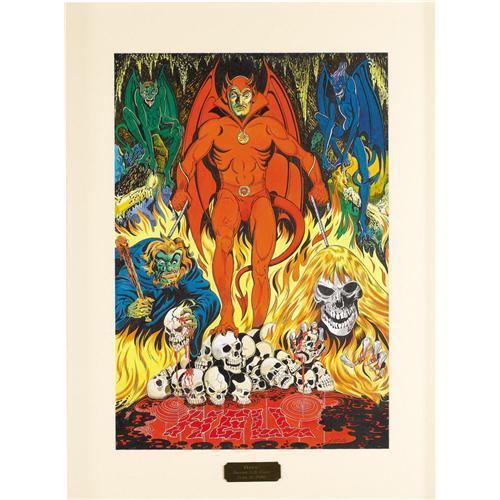 <B>L. B. Cole - "Hell" Painting Original Art (1980). </B></I> Creator of more than 1500 covers, the late L. B. Cole remains one of the top-ranked talents in the history of comic book art. Cole is famous for the bold, flat hues of his self-described "poster color covers." He was accomplished at every subject, from funny animals, to superheroes, to jungle girls, to science fiction, to crime, to fantasy. Cole was also the publisher and cover artist for Star comics. This feverish fantasy, titled "Hell," recalls elements of his fan-favorite covers to <B>Suspense Comics </B></I>#11, <B>Startling Terror Tales </B></I>#10, <B>Blue Bolt Weird </B></I>#115, and <B>Mask Comics </B></I>#2, and it was showcased in the Cole feature article for the <B>Overstreet Price Guide </B></I>#11. L. B. Cole has signed this mixed-media masterwork in the lower right. The art is in Excellent condition and has been framed to an overall size of 23.5" x 30". <BR><BR><b>Shipping:</b> Framed - with Glass, Large (<a target="_blank" href="http://www.heritageauctions.com/common/shipping.php">view shipping information</a>)