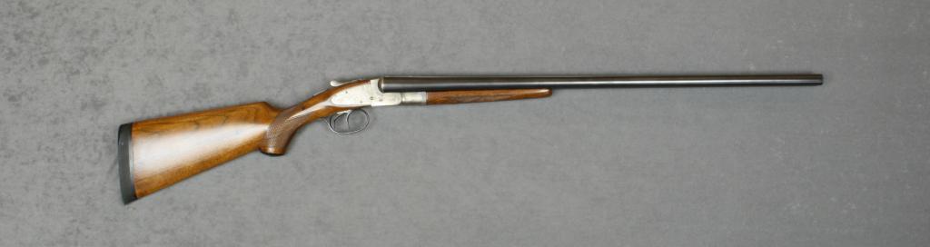 L.C. Smith Field Grade SxS concealed hammer  shotgun, 16 gauge, 28” barrels, blue and case  hardened finish, checkered wood stocks,  #FW59257.  This gun is in overall very good  to fine condition showing approx. 85% mutedblue finish on barrels and approx. 80%  original case colors on the frame;  Decelerator black hard rubber butt pad;  overall very good bores, crisp actions, very  good markings, fine wood stocks.  Est.:$600-$1,200.