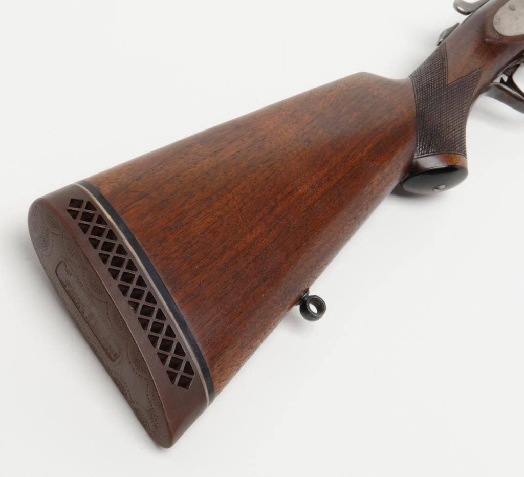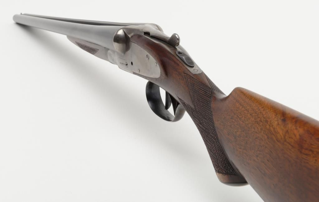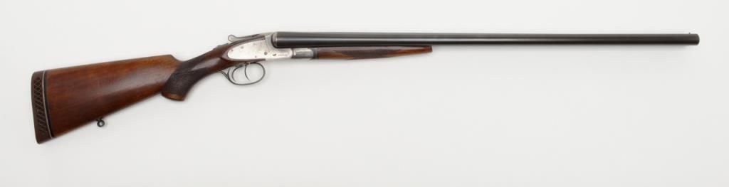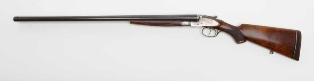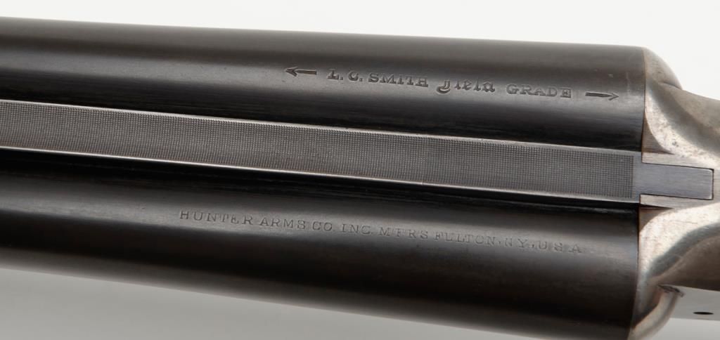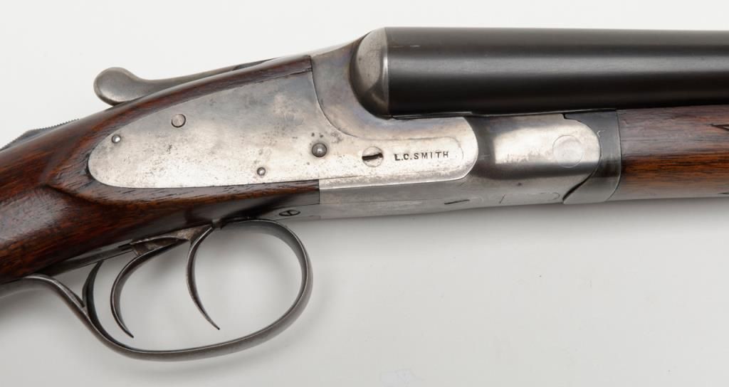 L.C. Smith Field Grade SxS hammerless shotgun, 12 gauge, 28” barrels, blue and case hardened finish, checkered wood stocks, White Line hard rubber butt pad, #126481 in overall fine condition showing the majority of its original blue finishon the barrels and case colors on the receiver, fine bores, crisp actions, sharp markings and very good to fine wood stocks. (C&R). Est.: $600-$1,200