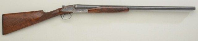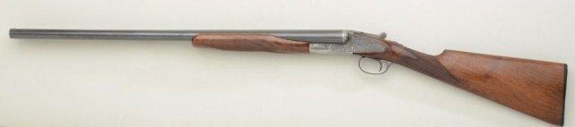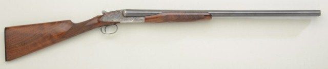 L.C. Smith Ideal Grade SxS concealed hammers shotgun marked Hunter Arms Co. Inc., single trigger, blue and case hardened finish, checkered beaver tail deluxe fore end and checkered wood butt stock, #FWE 97736. Thisgun is in overall fine condition showing the majority of its blue finish on the barrels and approx. 70% muted case colors on the receiver, fine bores, crisp actions and fine markings; wood is overall very good to finecondition with some scattered mars from storage and a small chip to the bottom toe of the butt stock and plastic butt plate. Est.: $1,800-$2,600.