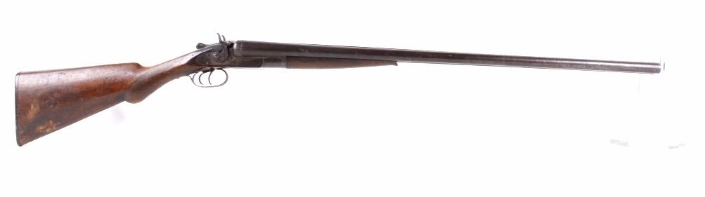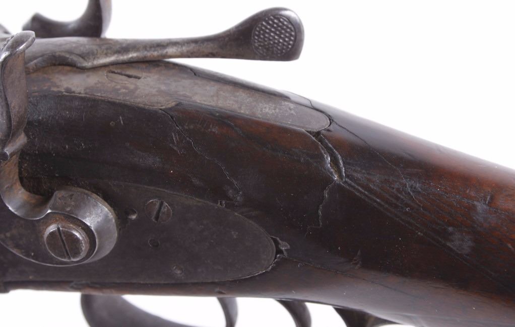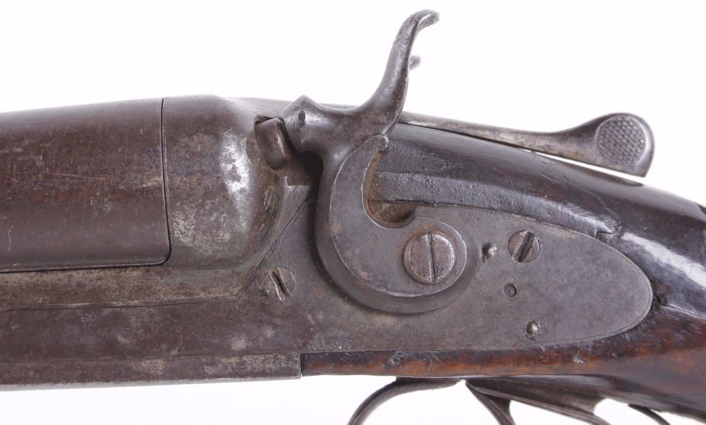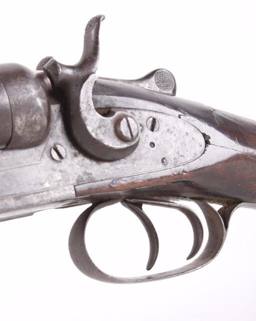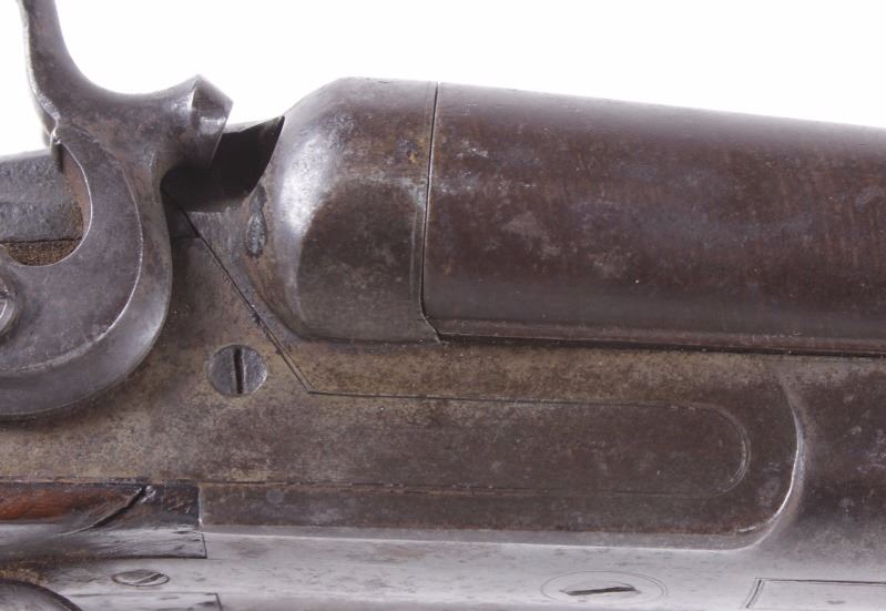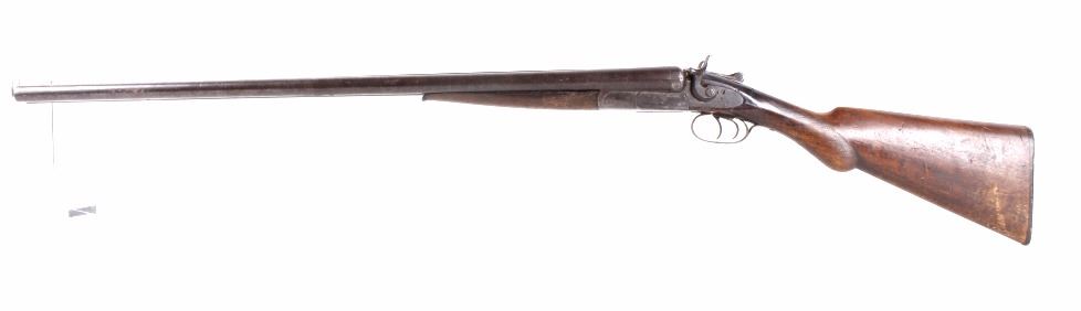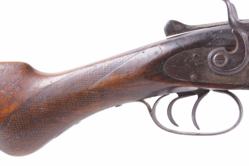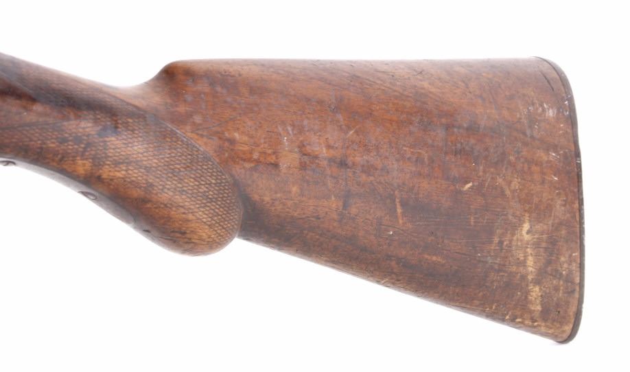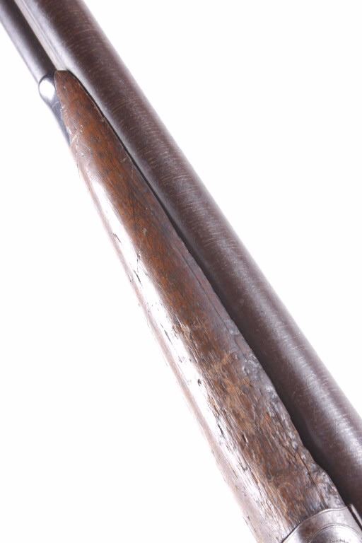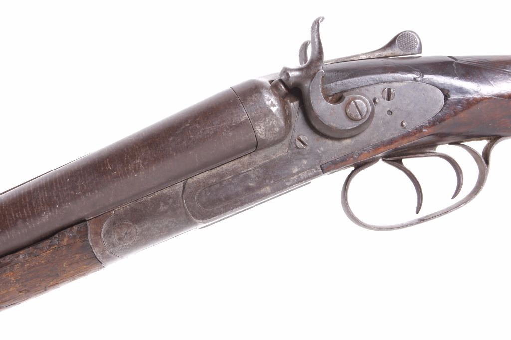 This lot features an L.C. Smith side by side external hammer 12 gauge shotgun. This side by side has the classic English external hammer firing system popular among English manufactures such as L.C. Smith. This shotgun has noticeable barrel wear and the stock has several dings. The stock also appears to be splitting near the receiver. One barrel appears to fire correctly while the other is misting the striking cap. Overall the gun is in fair condition for its age. Serial number: 50085 Curio and Relic firearm FFL transfer or NCIS background check required.