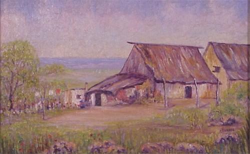 L. Chaffe (20th Century) VILLAGE BARN WITH FLOWERS, oil painting on canvas board, signed lower right, framed.