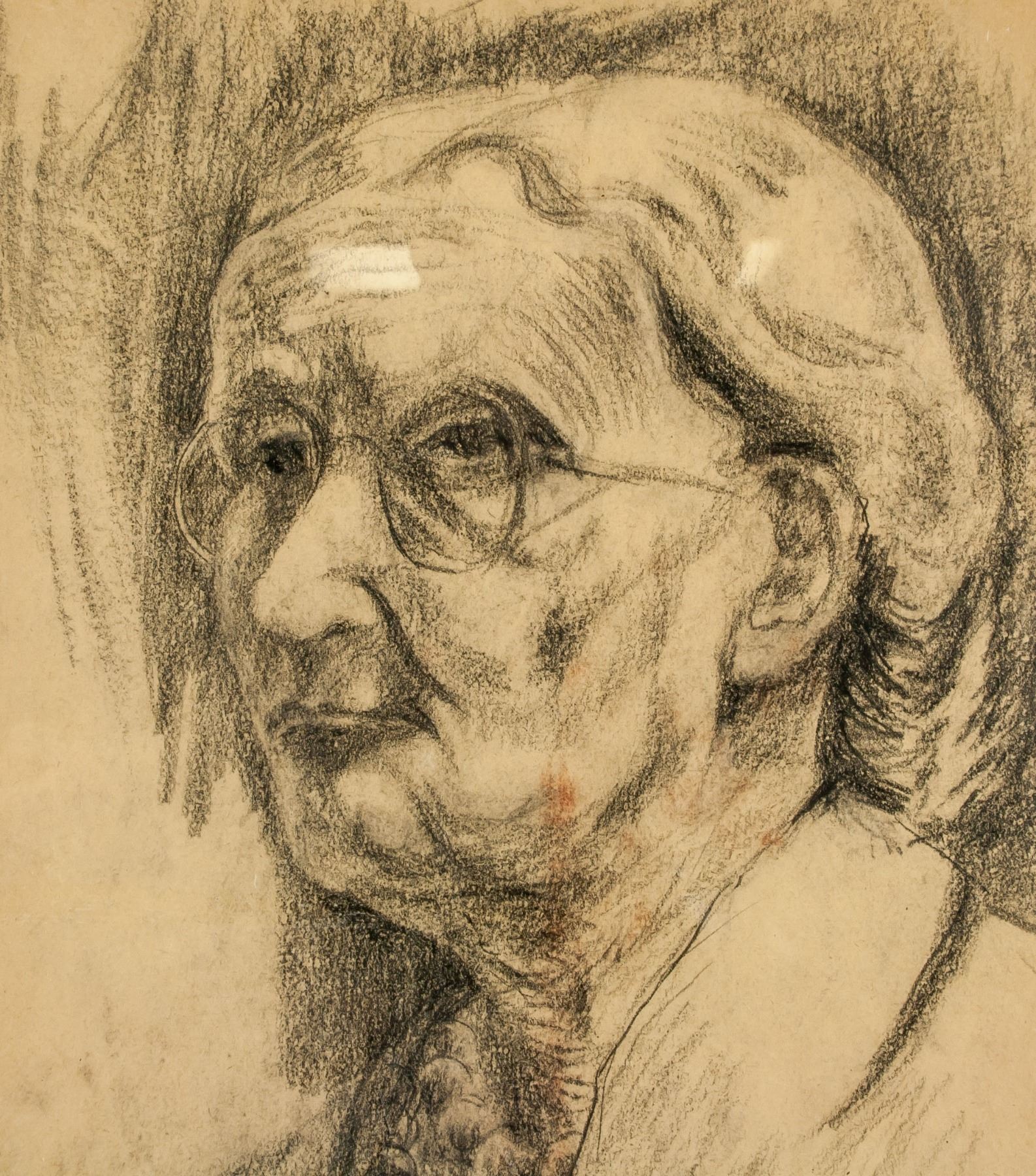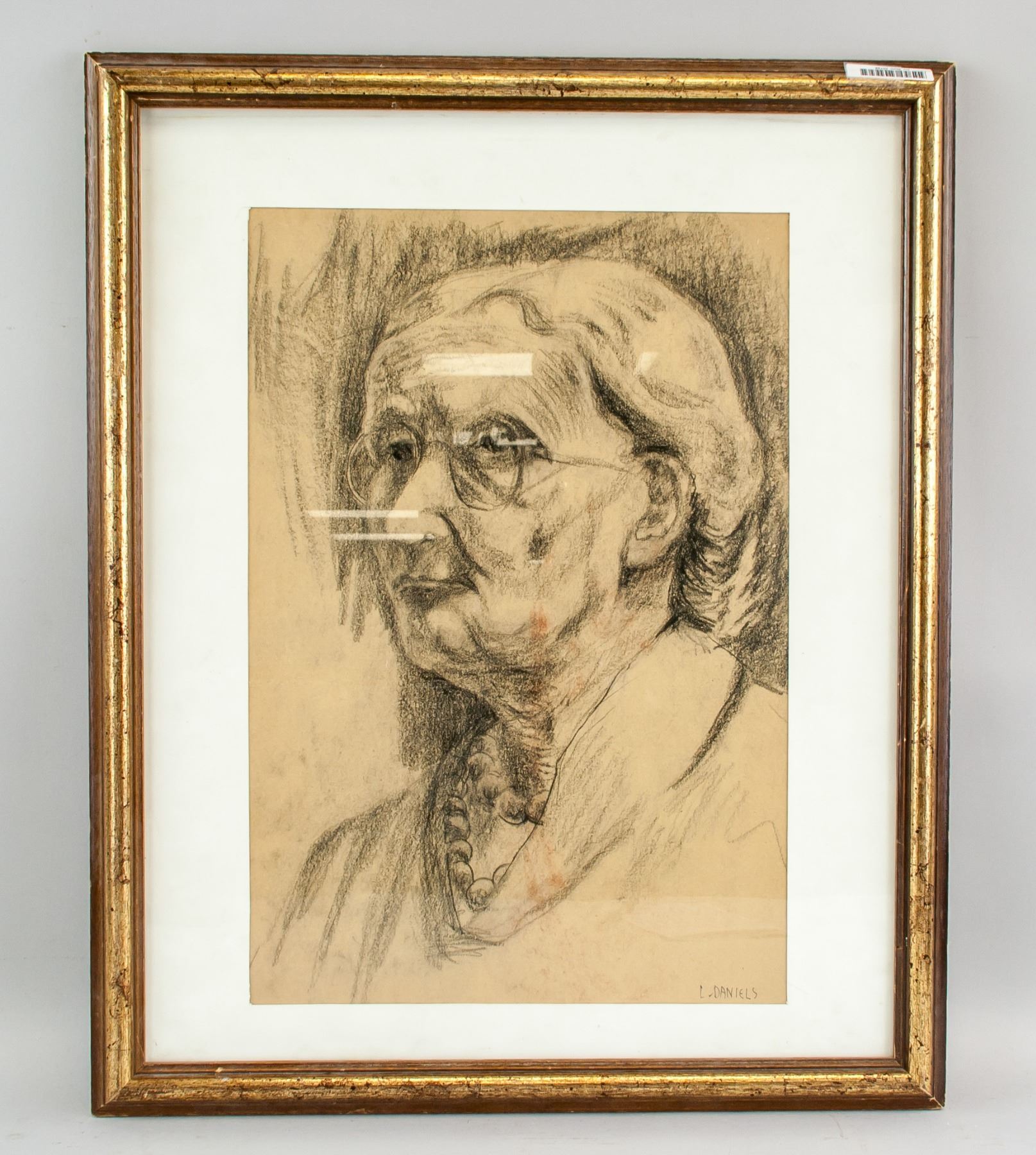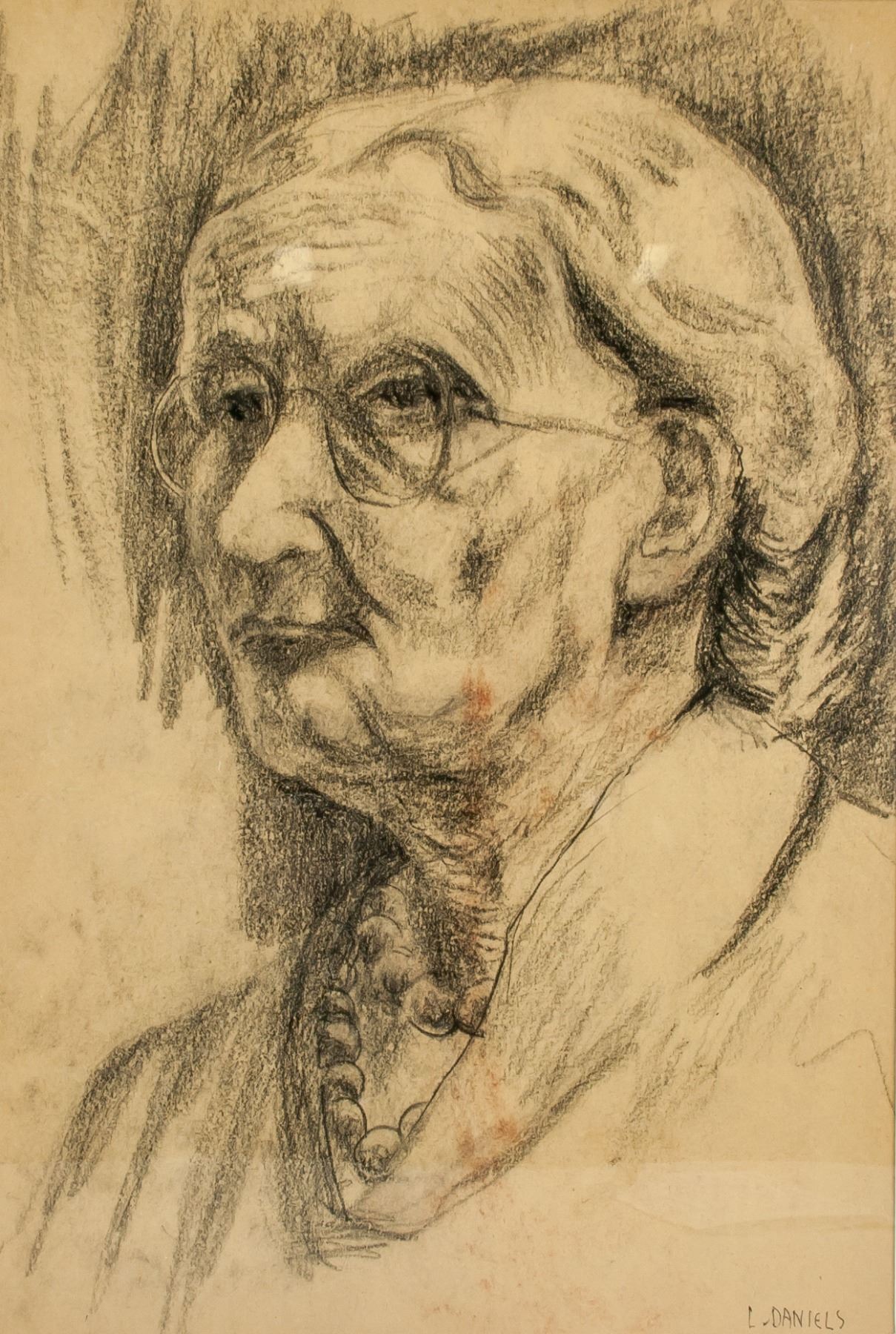 Charcoal on paper, portrait of an old lady framed. Signed on lower right corner. 16.5 x 11.5 inch, 42 x 29 cm