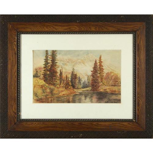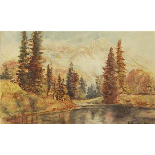 L. Douglas, Watercolor, Stream in Mountain Landscape, 1925, sight size 8 3/4" x 14 1/2", signed lower right