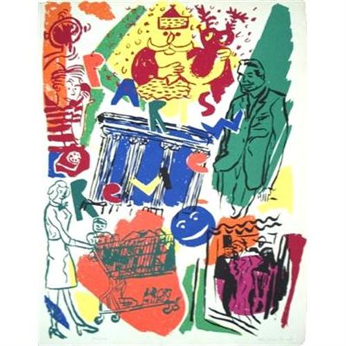 Notes:Original hand made paper, signed and numbered, 150 impression printed, our number is #97/150. Made by Kim Macconnel for the benefit of the Paris Review in 1982. The Paris Review publishes writings and poetry by aspiring writers young and old. The publications are paid for partly by the sale of artwork created and sold by the Paris Review.