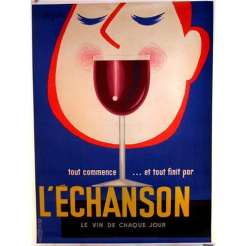 An ingenious design demonstrates just how simple it is to attract our attention with a simple image....one look says it all!!! A dazzling wine and spirits antique poster.47x63,Circa 1950's. Great condition. Preserved and mounted on linen.