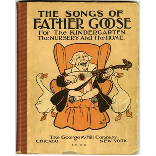 <B>L. Frank Baum "The Songs of Father Goose", Signed (George M. Hill, 1900).</B></I> Published around the midpoint of Baum's career as a children's author, <B>The Songs of Father Goose </B></I>was released in 1900 -- the same year as his classic <B>The Wonderful Wizard of Oz</B></I> -- and both were published by Hill. <B>Father Goose</B></I> contains 84 pages, illustrated throughout by W. W. Denslow, with music by Alberta N. Hall, illustrated boards, and a cloth spine. This first edition copy is in Good condition with some soiling to the boards and bumping to the corners, some paper loss to the corners and edges, and an inscription and signature in pencil to the first free endpaper. The front hinge has begun to separate from the contents, otherwise it is a sound copy. <I>LOA from PSA/DNA. </B></I><BR><BR><b>Shipping:</b> Books & Catalogs (<a target="_blank" href="http://www.heritageauctions.com/common/shipping.php">view shipping information</a>)