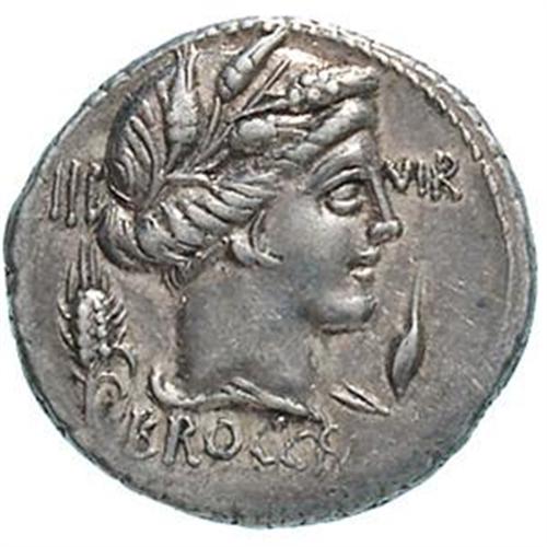 L. Furius Cn. f. Brocchus Denarius, 63 a. C.