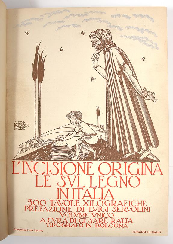 White, Fred Curtiss. L'Incisione Origina. Le Svl Legno In Italia. Volume Unico Dedicato alla Xilografia Italiana, a cura di Cesare Ratta, Bologna, 1928. No. 191/500. Preface by Luigi Servolini. 300 plates in b/w and in color by 86 artists. Dark gray cloth covers have edge wear. Interior is lightly toned; the plates are in fine condition.