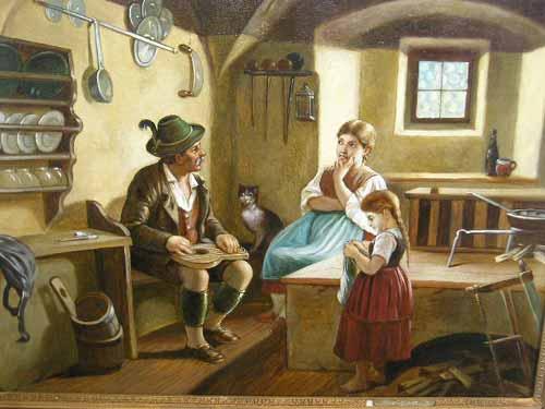 L Kaufman - Tyrolean interior - oil on canvas, signed, 52cms x 67.5cms...