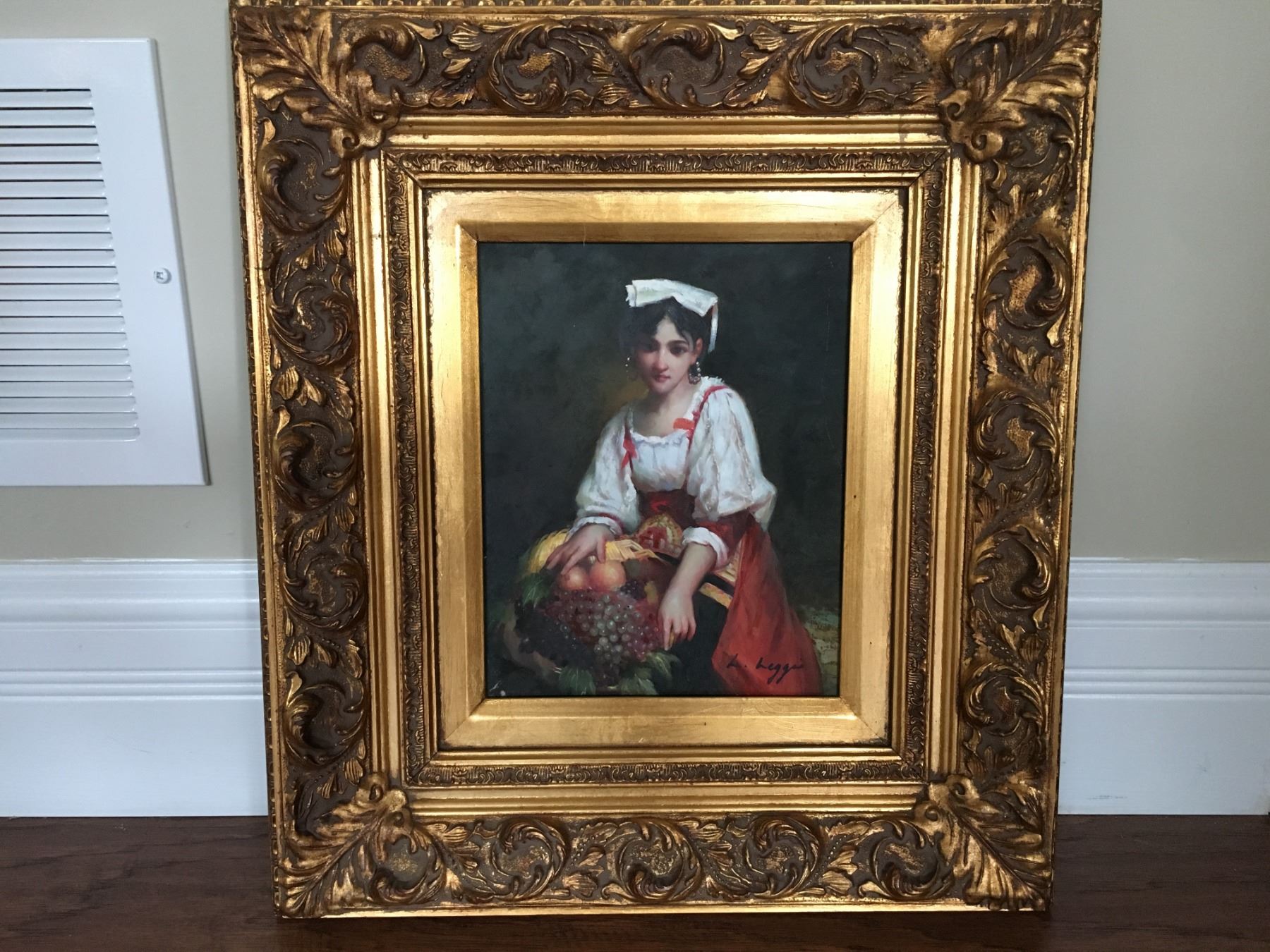 L. LEGGIS (?), OIL W/ GILT FRAME