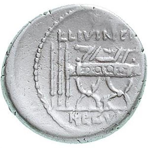 Repubblica Romana. L. Livineius Regulus. Denarius, 42 a.C. D/ Testa del pretore L. Livineius Regulus a destra. R/ Sedia curule tra sei fasci. Sopra, L. LIVINEIVS. In esergo: REGVLVS. Cr. 494/28. B. 11. gr. 3.95 R. AG. Bel BB+.