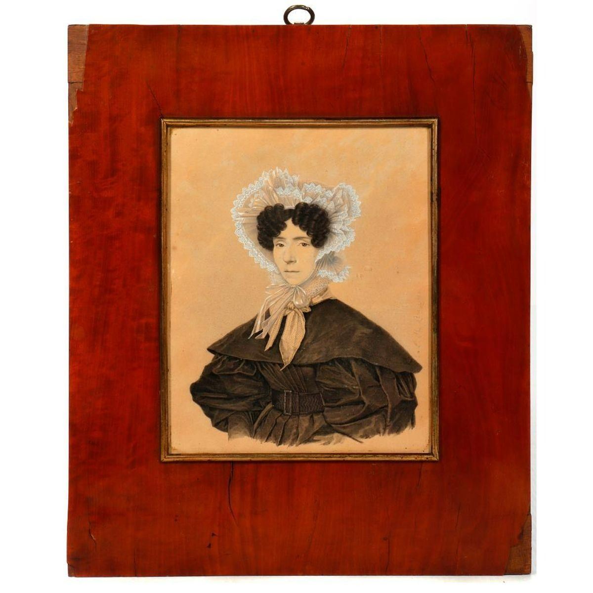 Artist: L. M. Petit. Title/Subject: Portrait of a lady in ruffled lace bonnet. Size: 7 1/2in x 6 12/4in; 12in x 10 1/4in (frame). Year Created: 1833. Signature: Signed and dated lower right margin. Medium/Ground: Graphite and wash on paper. Condition: Good; toning, light soiling/spotting at margins. Condition Report: All lots are sold as is and where is. Turner Auctions + Appraisals, LLC provides condition reports upon request to aid in your bidding decision. No statement regarding age, condition, kind, value, or quality of a lot, whether made orally at the auction or at any other time, or in writing in this catalog or elsewhere, shall be construed to be an express or implied warranty, representation, or assumption of liability. All sales are final, Turner Auctions + Appraisals, LLC does not give refunds based on condition. Turner Auctions + Appraisals, LLC does not perform any shipping or packing services. We do have a list of suggested shippers who gladly provide quotes prior to your bidding. Please visit our webpage for a list of recommended shippers.