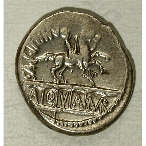 <B>L. Marcius Philippus.</B></I> 56 B.C. AR denarius (18 mm, 4.11 g). Diademed head of Ancus Marcius right; lituus behind / Equestrian statue right on aqueduct of five arches. Crawford 425/1; Sydenham 919; Marcia 28. <B>VF.</B></I><BR><BR><b>Shipping:</b> Coin/Currency (<a target="_blank" href="http://www.heritageauctions.com/common/shipping.php">view shipping information</a>)