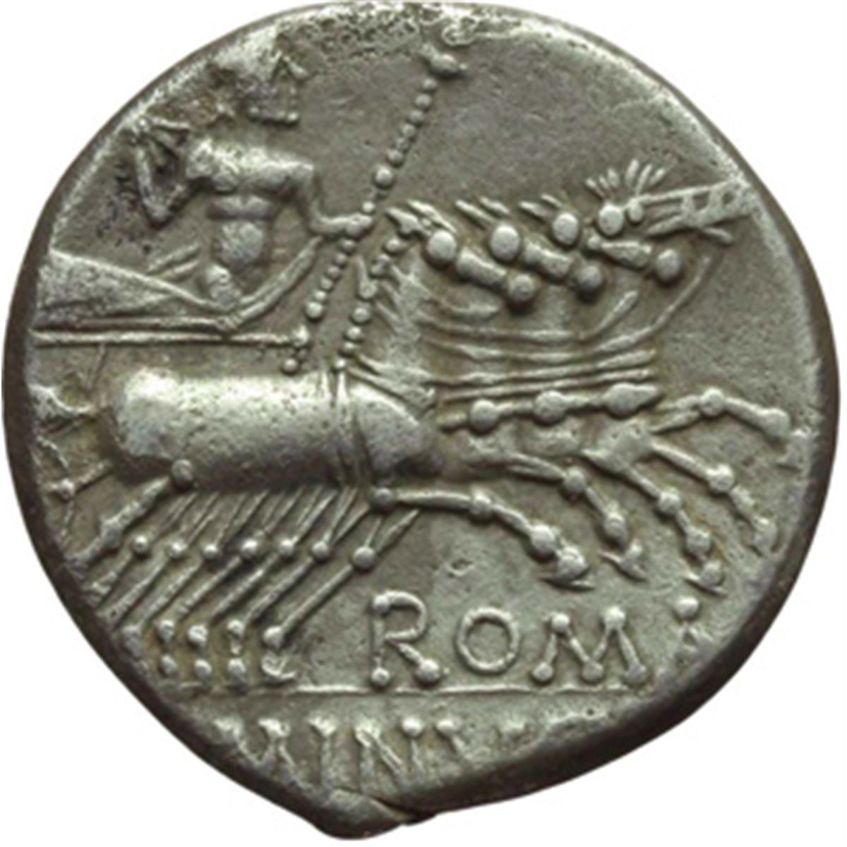 Repubblica Romana. L. Minucius. Denario, 133 a.C. D/ Testa di Roma a destra. Dietro, X. R/ Jupiter in quadriga a destra. Sotto i cavalli, ROMA. In esergo: L. MINVCI. Cr. 248/1. B.15. AG. g. 3.82 mm. 18.00 Bel BB+.