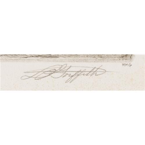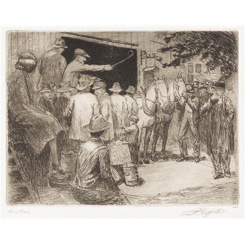 <B>L.O. GRIFFITH (1875-1950)</B></I><BR><I>Auction</B></I><BR>Etching and aquatint<BR>6in. x 8in.<BR>Signed lower right<BR>Titled lower left<BR><BR> <B>Condition Report:</B> Excellent condition. Tape remnants on the edges of the sheet. Unframed.<BR><BR><b>Shipping:</b> Requires 3rd Party Shipping (<a target="_blank" href="http://www.heritageauctions.com/common/shipping.php">view shipping information</a>)