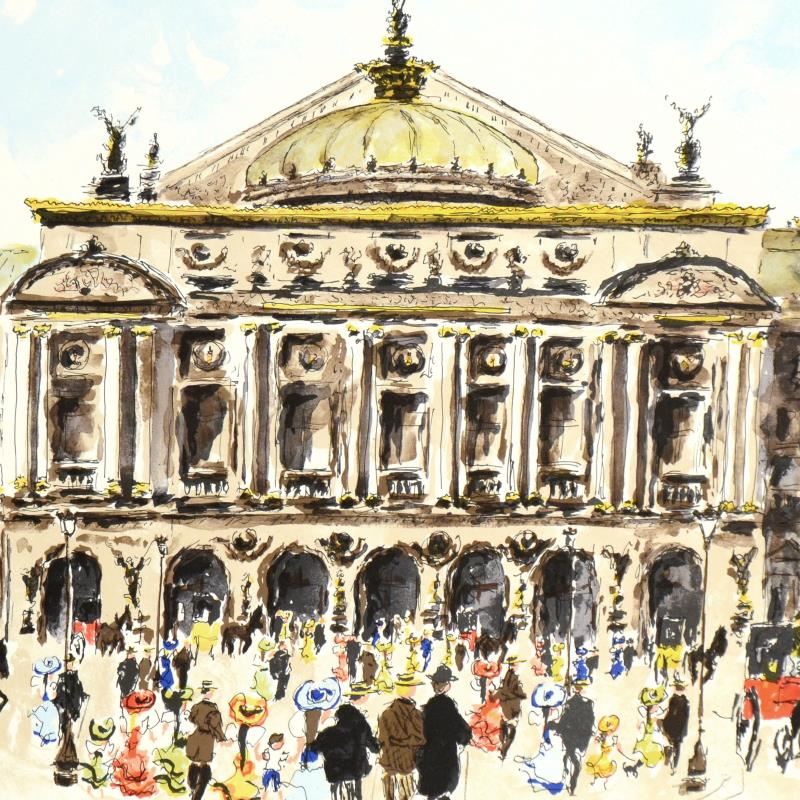 "L'Opera" is a limited edition lithograph on paper, numbered and hand signed by the artist! Measures approx. 29.5" x 21" (border). 26" x 19" (image).