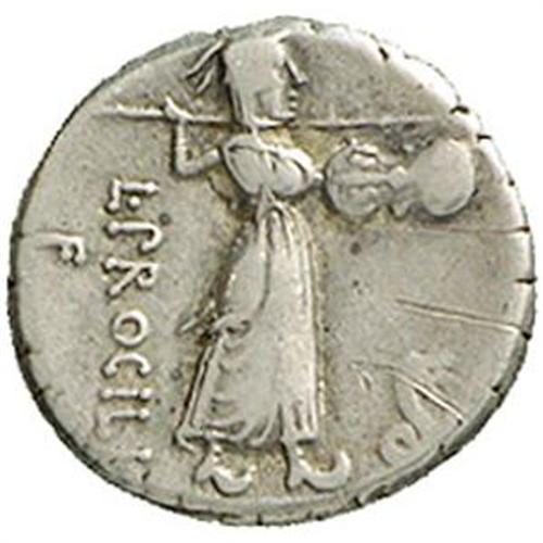 L. Procilius. Denario, 80 a.C. D/ Testa di Jupiter a destra. R/ L. PROCILI / F. Iuno Sospita avanza a destra. Cr. 379/1. B. 1. gr. 3.89 AG. BB.