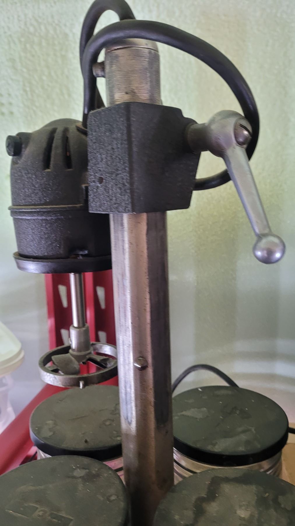 Vintage watch cleaning machine with glass canister and a bag of glass canisters with cleaning fluid. Pickup at 10 am