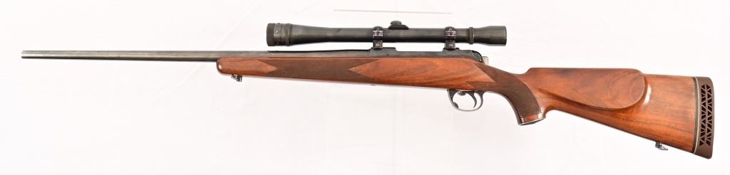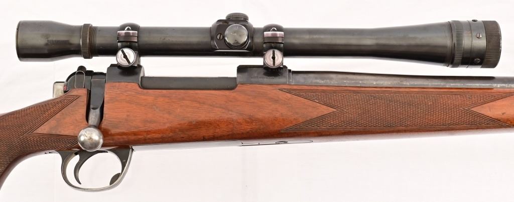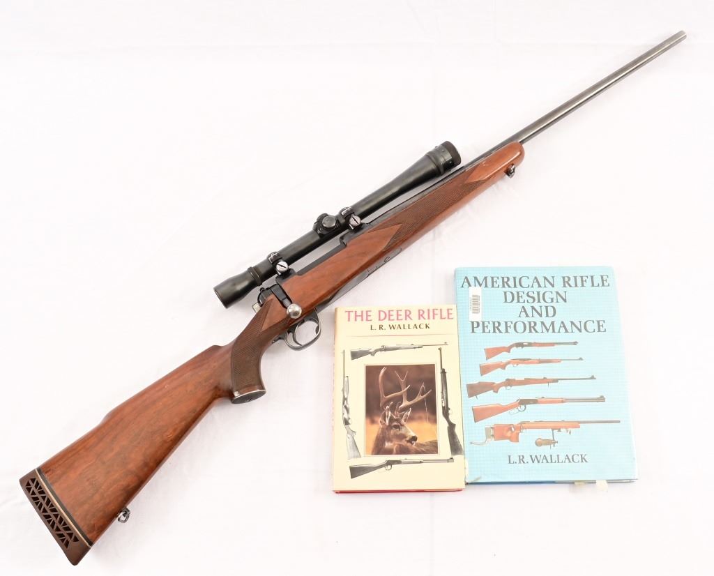 24" barrel marked" L.R. WALLACK .22-250". Blued finish with checkered walnut stock. Whiteline De Luxe rubber buttpad. S/N 581385. Left side of receiver marked BSA 7 x 57mm. Telescopic Scope, maker unknown, with range of 50 ft- 1000 yards. Along with being a prominent Gunsmith, he authored books such as "Modern Accuracy", "The story of Bench Rest Shooting" and "The Anatomy of Firearms" among many others. Copies of his books "American Rifle Design and Performance" and "The Deer Rifle" are included.