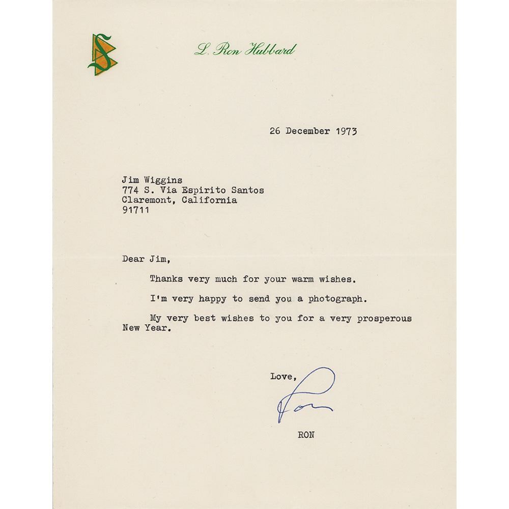 TLS signed “Ron,” one page, 7.25 x 9.25, personal letterhead, December 26, 1973. Letter to Jim Wiggins, in part: "Thanks very much for your warm wishes…My very best wishes to you for a very prosperous New Year." In very fine condition.