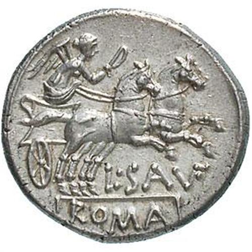Repubblica Romana. L. Saufeius. Denarius, 152 a.C. D/ Testa di Roma a destra. R/ Vittoria in biga a destra. Sotto i cavalli, L. SAVF. In esergo: ROMA. Cr. 204/1. B. 1. gr. 3.82 AG. SPL+. Fondi lucenti.