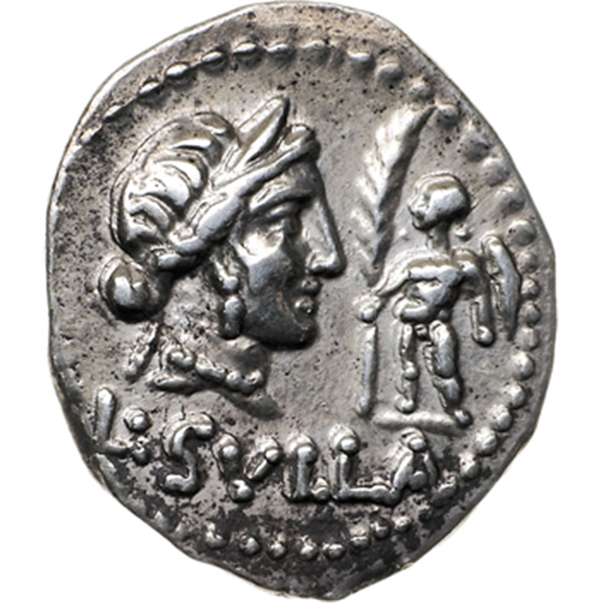 Repubblica Romana. L. Sulla. Denario, 84-83 a.C. D/ Testa diademata di Venere a destra. Di fronte a lei, Cupido stante a sinistra tiene ramo di palma. Sotto, L.SVLLA. R/ Capis e lituus tra due trofei. Sopra, IMPER. Sotto, ITERVM. Cr.359/2. B.(Cornelia)29. AG. g. 3.75 R. qFDC/SPL. Raro e di qualitv† eccezionale per il tipo. Fondi lucenti.