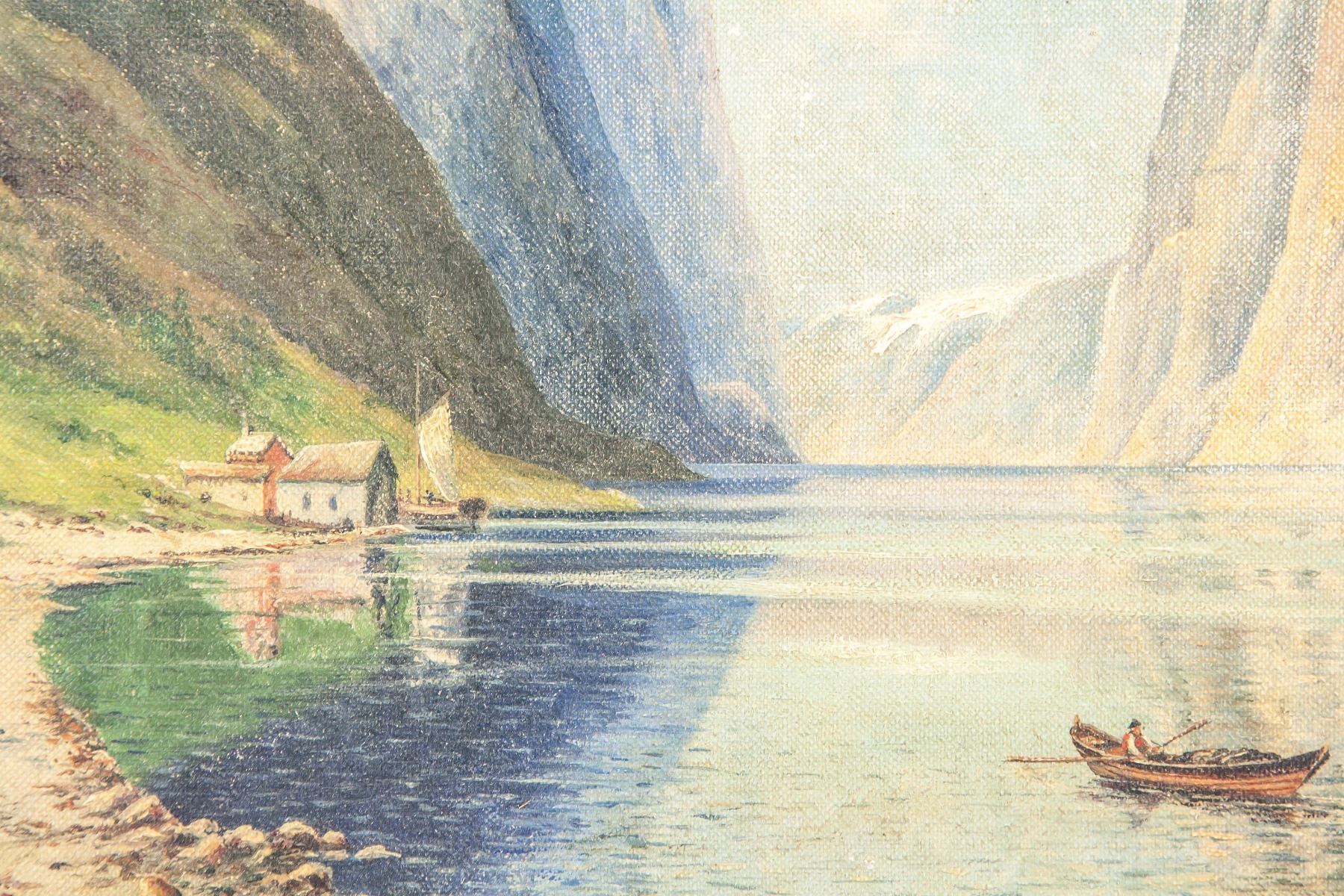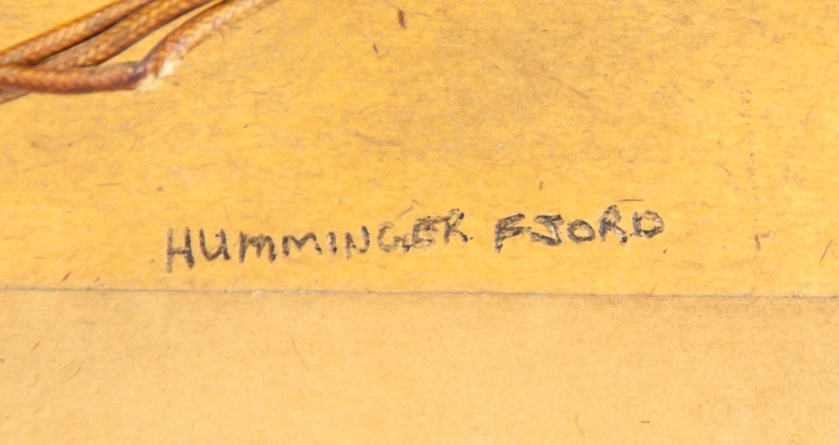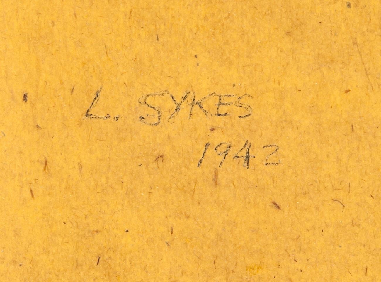 Oil on canvas, framed, "Humminger Fjord", signed L. Sykes on lower right corner and verso, dated 1942, 11 x 14 in (27.9 x 35.6 cm). PROVENANCE: Private collection, North York, ON