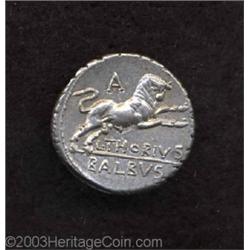<TABLE cellSpacing=0 cellPadding=0 width="100%" bgColor=#000000 border=0><TBODY> <TR><TD width="100%"><TABLE cellSpacing=1 cellPadding=3 width="100%" border=0><TBODY><TR><TD width="100%" bgColor=#79735c><FONT face=arial color=#ffffff size=3><B>Description</B> </FONT></TD></TR><TR><TD width="100%" bgColor=#ffffff><FONT face=arial size=2><B>L. Thorius Balbus.</B></I> 105 B.C. AR denarius (18 mm, 3.99 g). Head of Juno Lanuvium right, wearing goat's skin headdress / Bull charging right; A above. Crawford 316/1; Sydenham 598; Thoria 1. Toned XF. </FONT></TD></TR></TBODY></TABLE></TD></TR></TBODY></TABLE><BR><A name=PricesRealized></A><TABLE cellSpacing=0 cellPadding=0 width="100%" bgColor=#000000 border=0><TBODY><TR><TD width="100%"><TABLE cellSpacing=1 cellPadding=3 width="100%" border=0><TBODY><TR><TD width="100%" bgColor=#79735c><A name=PR><FONT face=arial color=#ffffff size=3><B>Previous Prices from Heritage Auctions</B> </FONT></A></TD></TR><TR><TD bgColor=#f6f6ed>No Prior Data Recorded </TD></TR><TR><TD bgColor=#ffffff><FONT face=arial size=1 ?>PLEASE NOTE: All prices realized reflect the final hammer price PLUS the buyer's premium in auctions that charge a buyer's premium. Each item has a notation at the top of the listing indicating whether that lot included a buyer's premium. Example: A item that sells with a final hammer price of $100 and a 20% buyer's premium will display with a price realized of $120. All information listed is intended to be as accurate as possible, but errors are possible. Please use this guide carefully and inform us of any inaccuracies. </FONT></TD></TR></TBODY></TABLE></TD></TR></TBODY></TABLE><BR><TABLE cellSpacing=0 cellPadding=0 width="100%" bgColor=#000000 border=0><TBODY><TR><TD width="100%"><TABLE cellSpacing=1 cellPadding=3 width="100%" border=0><TBODY><TR><TD width="100%" bgColor=#79735c colSpan=6><FONT face=arial color=#ffffff size=3><B>Price Guide*</B> </FONT></TD></TR><TR bgColor=#f6f6ed><TD align=middle><B>Grade</B> </TD><TD align=middle><B>Coin World<BR>(Trends)</B> </TD><TD align=middle><B>Numismedia<BR>Retail</B> </TD><TD align=middle><B>Numismedia<BR>Wholesale</B> </TD><TD align=middle><B>Coin<BR>Universe</B> </TD><TD align=middle><B>Heritage<BR>Value Index</B> </TD></TR><TR bgColor=#ffffff><TD colSpan=6><FONT size=1>*All information listed is intended to be as accurate as possible, but errors are possible. No item may be returned or refused based on this information which is provided as a service to our customers. You should contact each pricing source directly to determine the accuracy of this information. </FONT></TD></TR></TBODY></TABLE></TD></TR></TBODY></TABLE><BR><TABLE cellSpacing=0 cellPadding=0 width="100%" bgColor=#000000 border=0><TBODY><TR><TD width="100%"><TABLE cellSpacing=1 cellPadding=3 width="100%" border=0><TBODY><TR><TD width="100%" bgColor=#79735c><FONT face=arial color=#ffffff size=3><B>Population Guide</B> </FONT></TD></TR><TR bgColor=#ffffff> Important notice: Heritage usually auctions material at the rate of 200-250 lots per hour. On some occasions eBay Live bid software or the Internet may not be able to keep up with the pace of the auction. We recommend placing a realistic absentee bid now as insurance to avoid disappointment. Occasionally the auctioneer may eliminate or reject an eBay Live bid, and the auctioneer may also reopen a lot after the close of the eBay live bidding (usually because we missed an audience bid), and may reject your bid even if it shows you as the winning bidder. By bidding via eBay Live, you agree that Heritage may award the lot to another bidder at its sole discretion under the circumstances described above or any other reasonable circumstances. Also please note that all Heritage lots purchased through eBay Live carry a 20% Buyer's Premium. Please make sure you read the Terms and Conditions before you bid.</TD></TR></TBODY></TABLE></TD></TR></TBODY></TABLE>