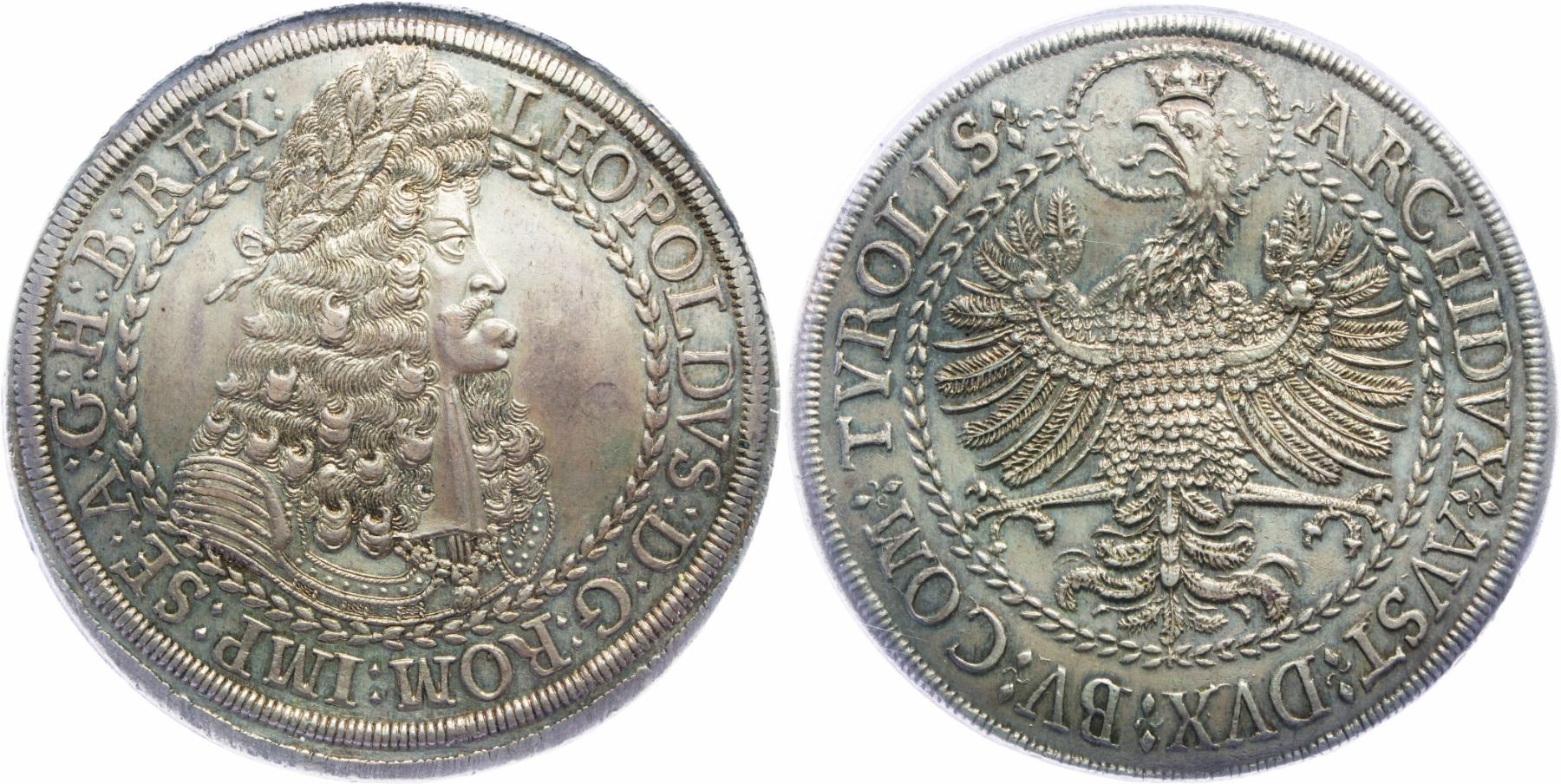 Léopold I 1657-1705 2 Thalers (Double Reichsthaler), Hall, ND (1686-96), AG 57.11 g. Ref : Dav. 3252, Moser/Tursky 762, Herinek 574