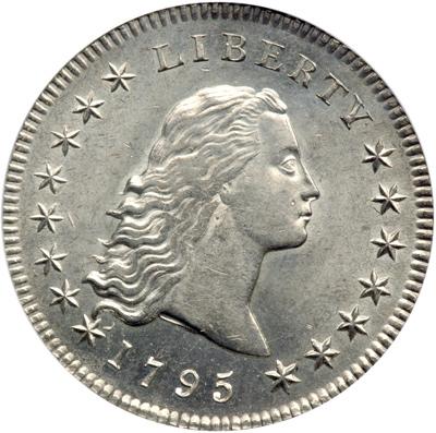 Between spring and late summer that year, 17 die marriages of 1795 flowing hair dollars were prepared and used to strike silver dollars. Employed were two bust punches, two separate wreath punches, and two different eagle punches. The mint struck a fairly large number of dollars in 1795: 160,295 to be exact, of which several thousand (according to the Bowers reference book on bust dollars) are believe to survive.