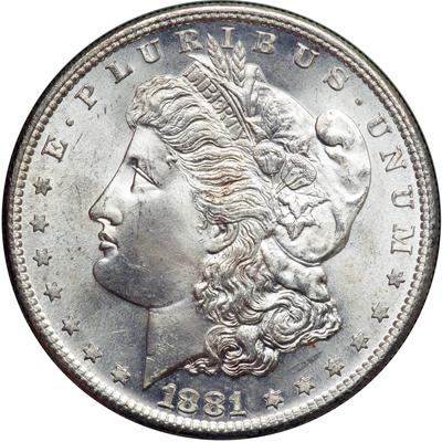 1881-S Morgan Dollar. Numistrust graded MS-67. Our grade is MS-66. Untoned.