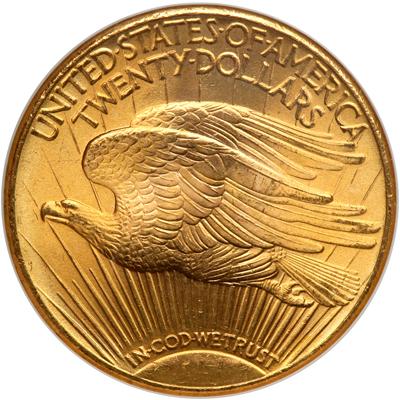 1927 $20 St. Gaudens. NGC graded MS-65. Star. A gorgeous golden-orange mint gem with superior eye appeal thus the star designation. The fully brilliant example we now hand over bidders beats (from a technical angle) practically all of the Gem 1927s that have passed through the various grading services.