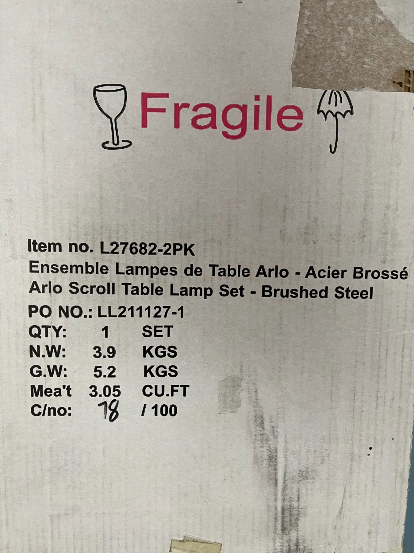L2 Lighting Arlo Scroll Table Lamps (2 pack) Appear new in box