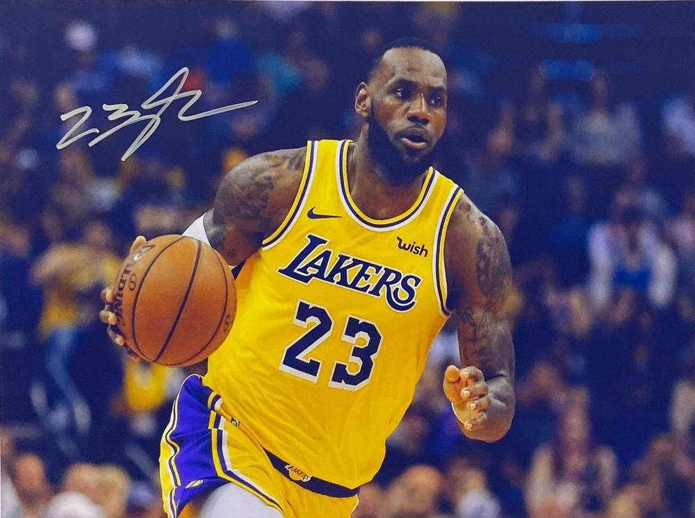 LA Lakers LeBron James facsimile signed photo. 8x10 inches. This item is a reprint of an original autograph
