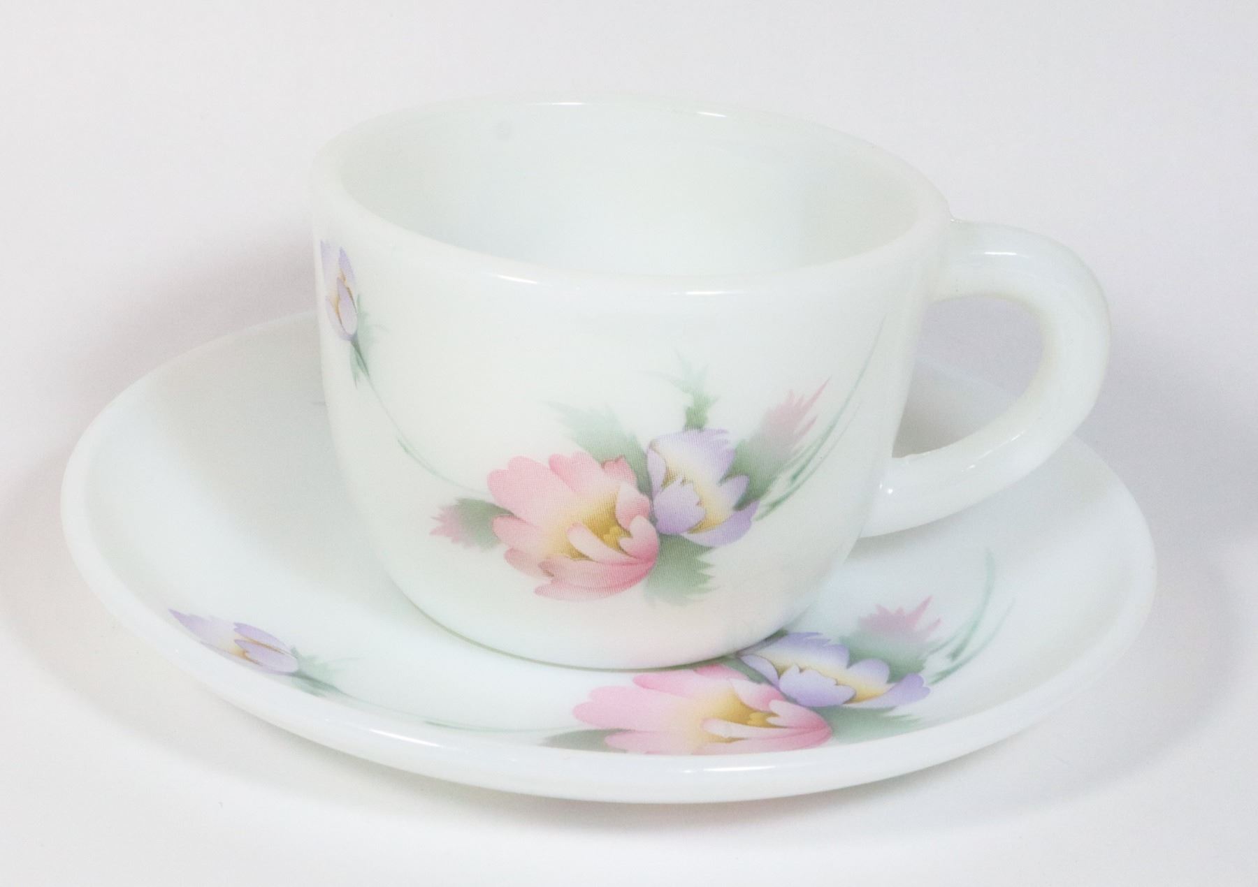 LA OPAL TEACUP AND SAUCER, OPAL GLASSWARE