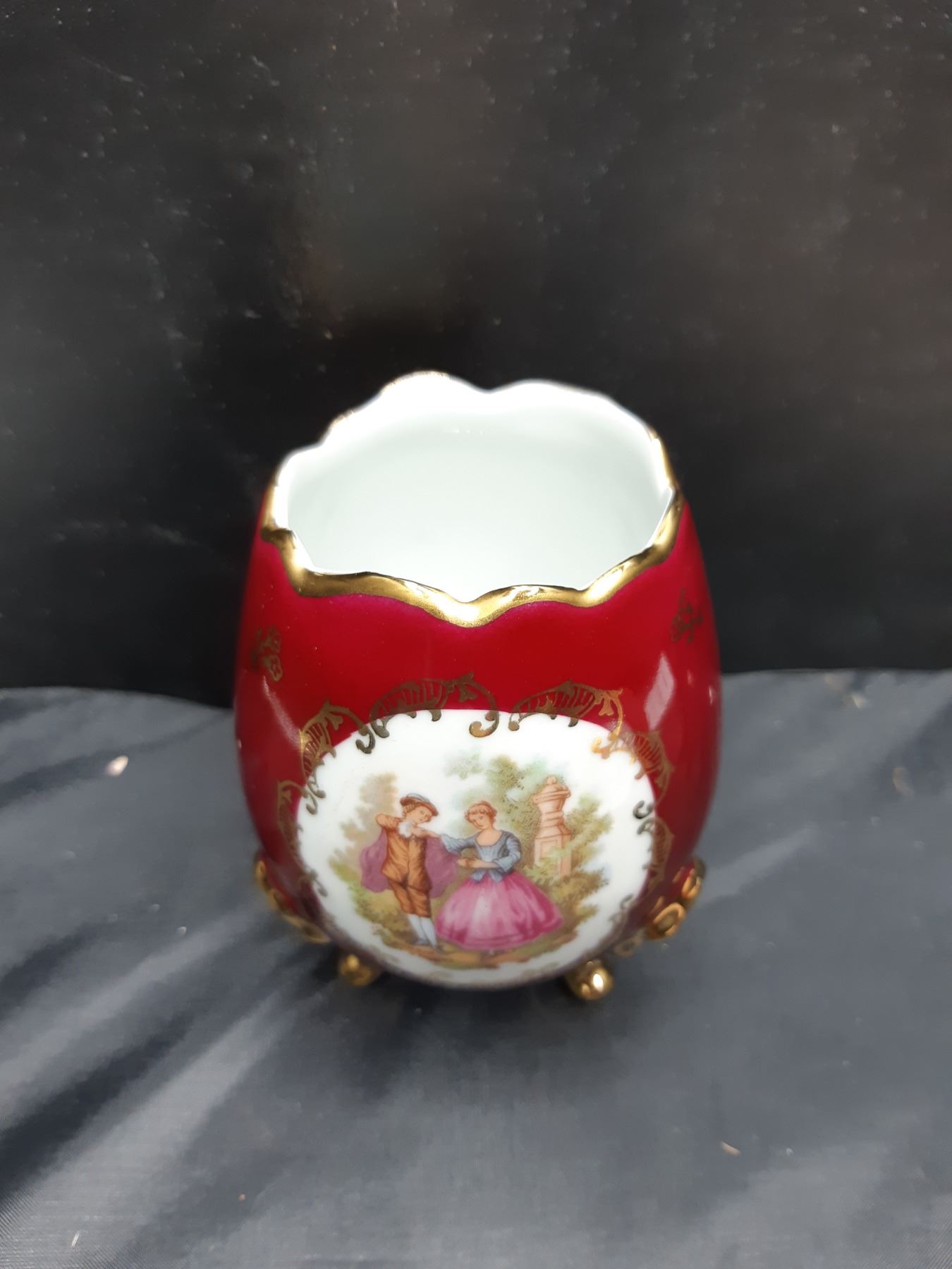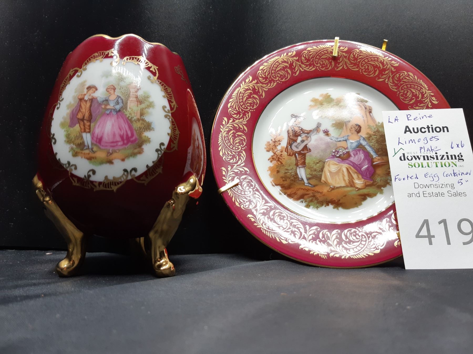 Plate 6x6 and egg shaped container 5" Bring packing material and pickup at 10 am