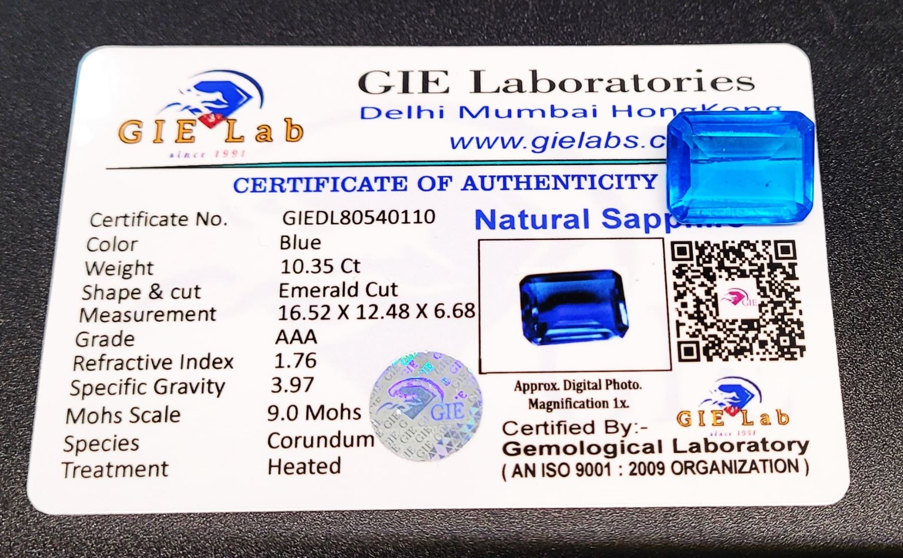 SAPPHIRE GEMSTONE, READY FOR SETTING, C/W INFORMATION CARD. JEWELLERY