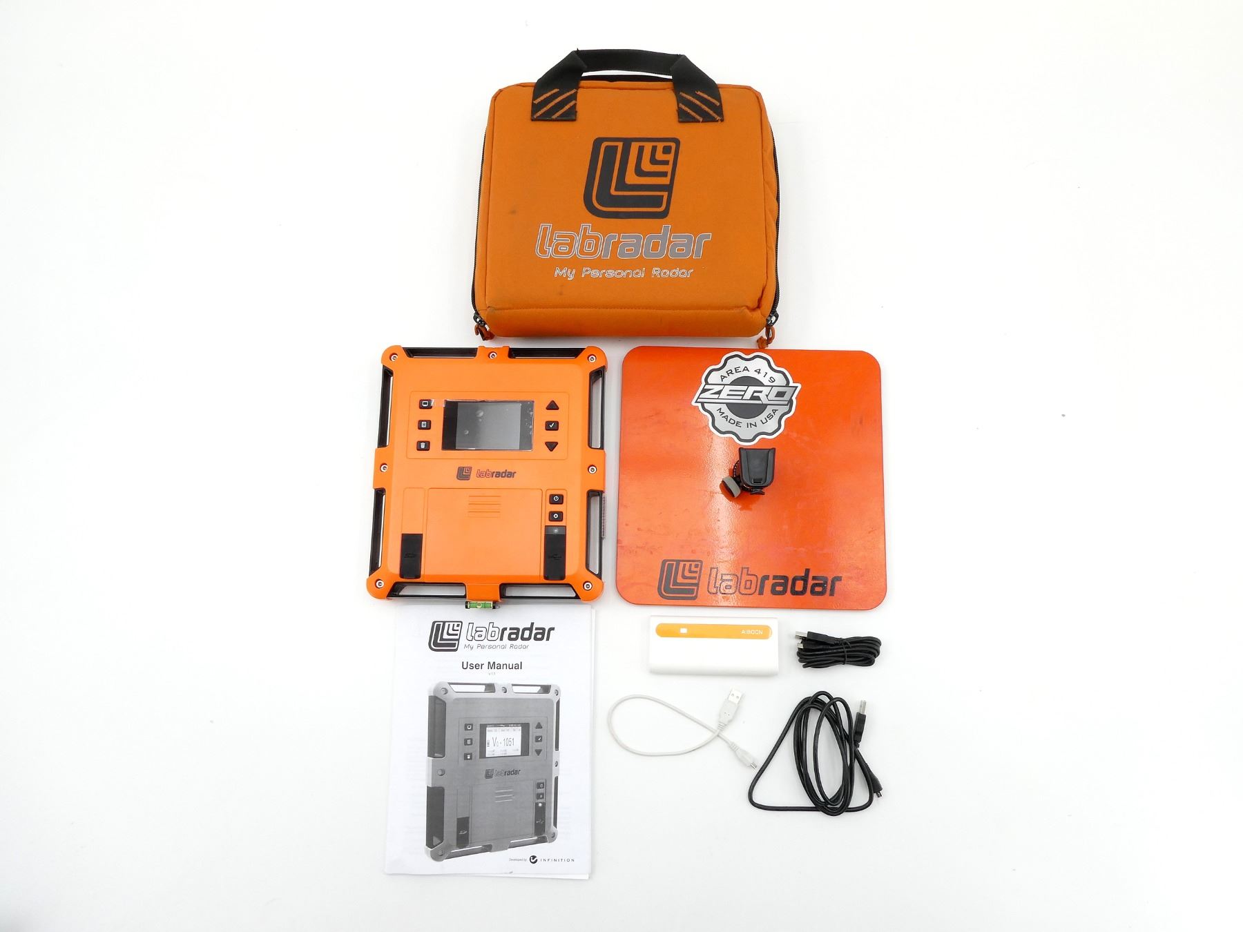 LOT INCLUDES; (1) LABRADAR MY PERSONAL RADAR, USES DOPPLER RADAR TO TRACK VELOCITY UP TO 100 YARDS, READ OUTS FOR; MAXIMUM VELOCITY / MINIMUM VELOCITY / STANDARD DEVIATION / EXTREME SPREAD, ACCURATE WITH; SUBSONIC / TRANSONIC / SUPERSONIC PROJECTILES, WORKS WITH RIFLES / SHOTGUN (SLUGS ONLY) / HANDGUNS / PELLET GUNS / BB GUNS / BOW & ARROW / CROSSBOW / PAINTBALL, APPROX. 10" X 11" X 2", TURNS ON, NOT FULLY TESTED, APPEARS NEW OLD STOCK, WITH QUICK SETUP & USER MANUAL IN PROTECTIVE CARRY CASE, ETC. & (1) LABRADAR AREA 419 ZERO METAL STAND, OVERALL LENGTH APPROX. 11.75" X 11.75". SEE PHOTOS.