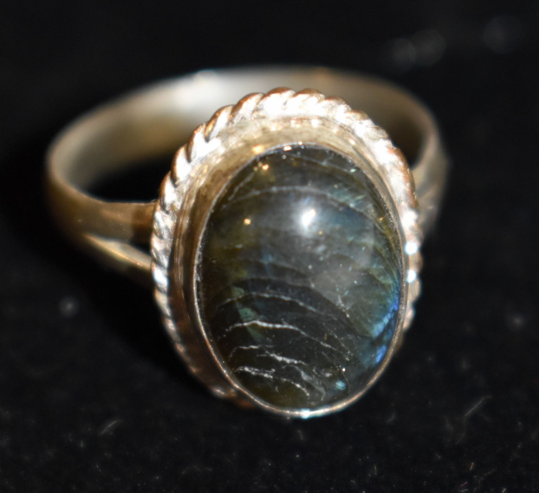 LABRADORITE RING 925 SILVER SZ 8