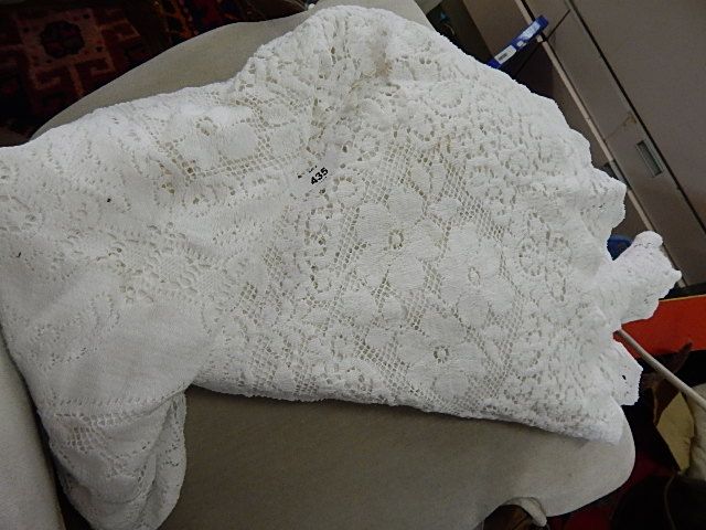 LACE TABLE CLOTH - WHITE (SMALL WHOLE NEEDS REPAIR)