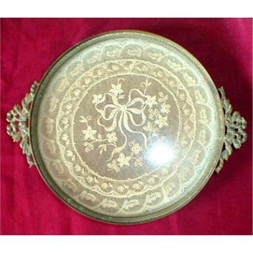 <tr><td>Title:LACE Vanity TRAY Round 2 HANDLES - ANTIQUE -</td></tr>