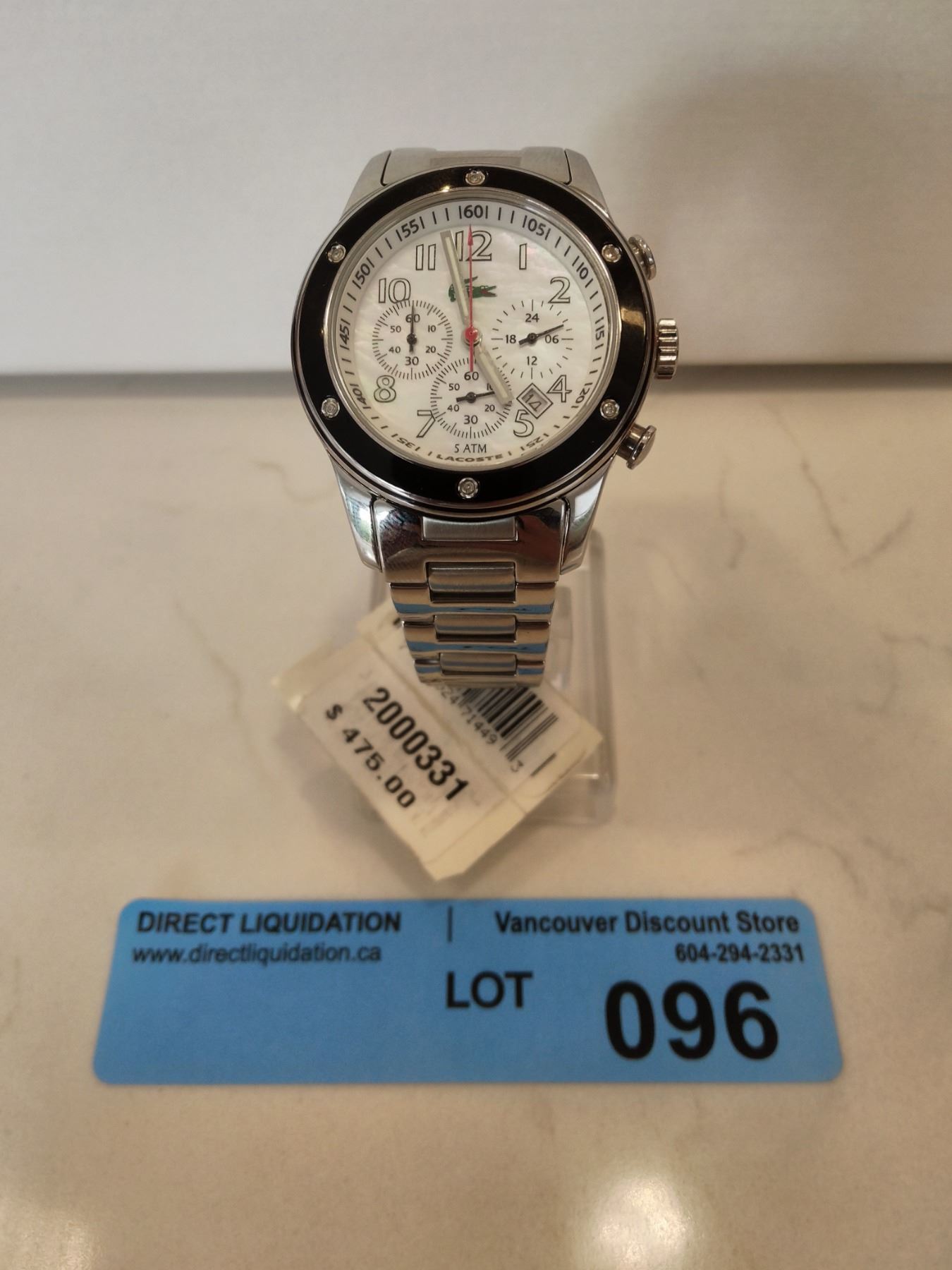 NEW WITH TAGS. WATER RESISTANT. JAPAN MOVEMENT APPROX MSRP - $425 The Lacoste watch debuted in 1993, inspired by the traditional polo shirt and featuring a distinctive green trim with textured detailing. Since that time Lacoste watches have been developed in numerous sporty and decorative styles (such as the Goa line )