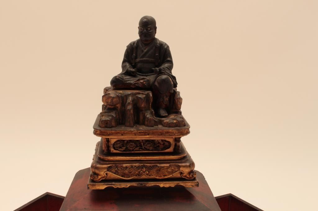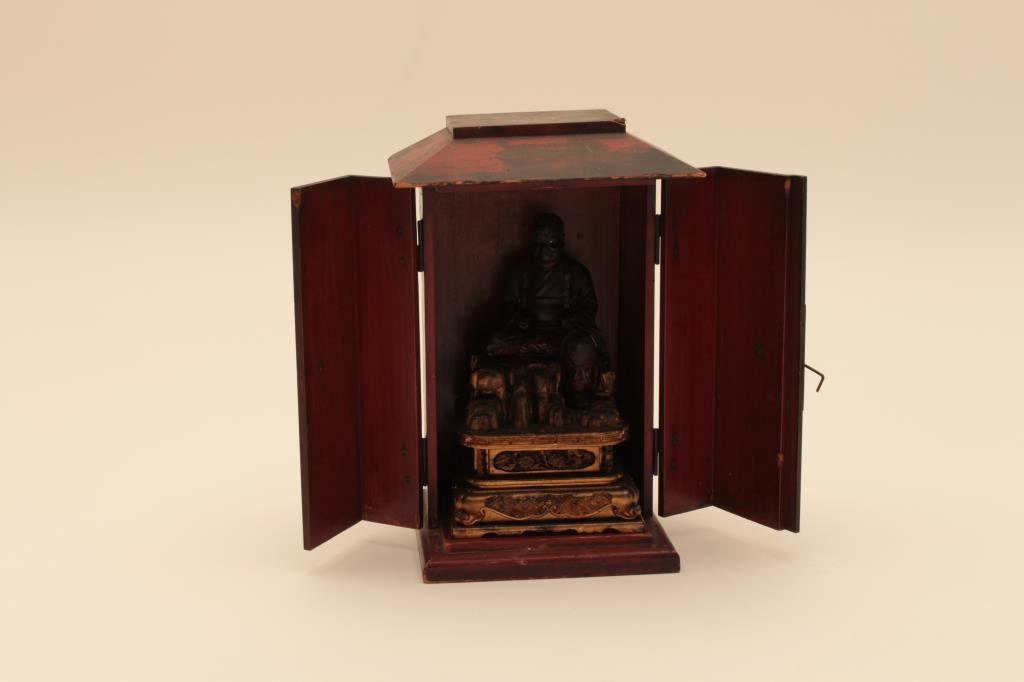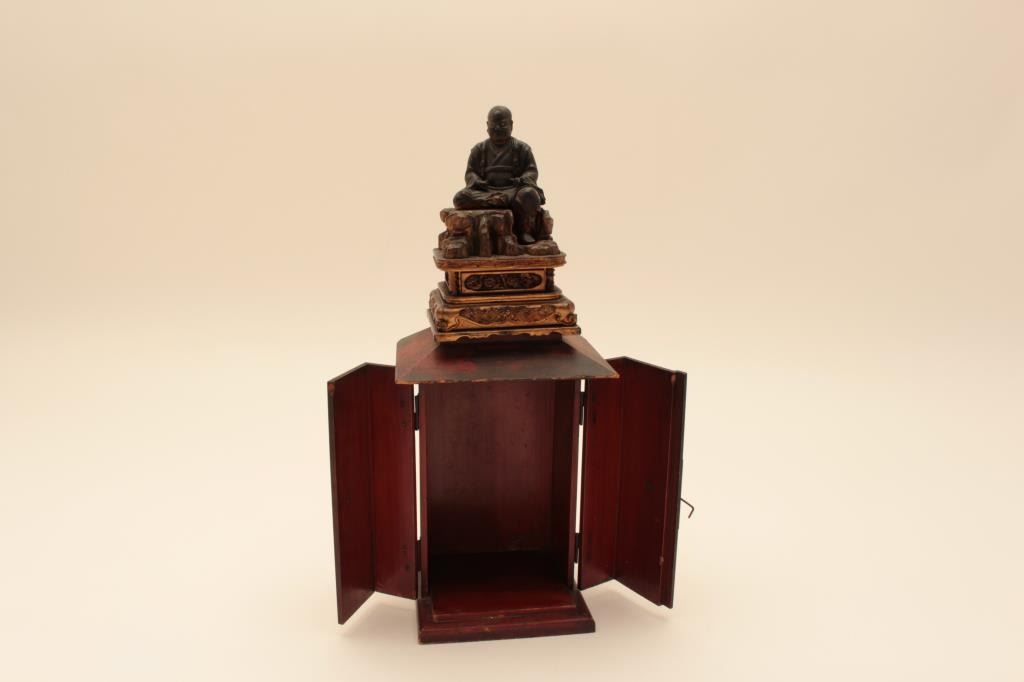 19th century or earlier carved and lacquered figure of deity. With period case, high quality from old collectors estate. Est:$150-300