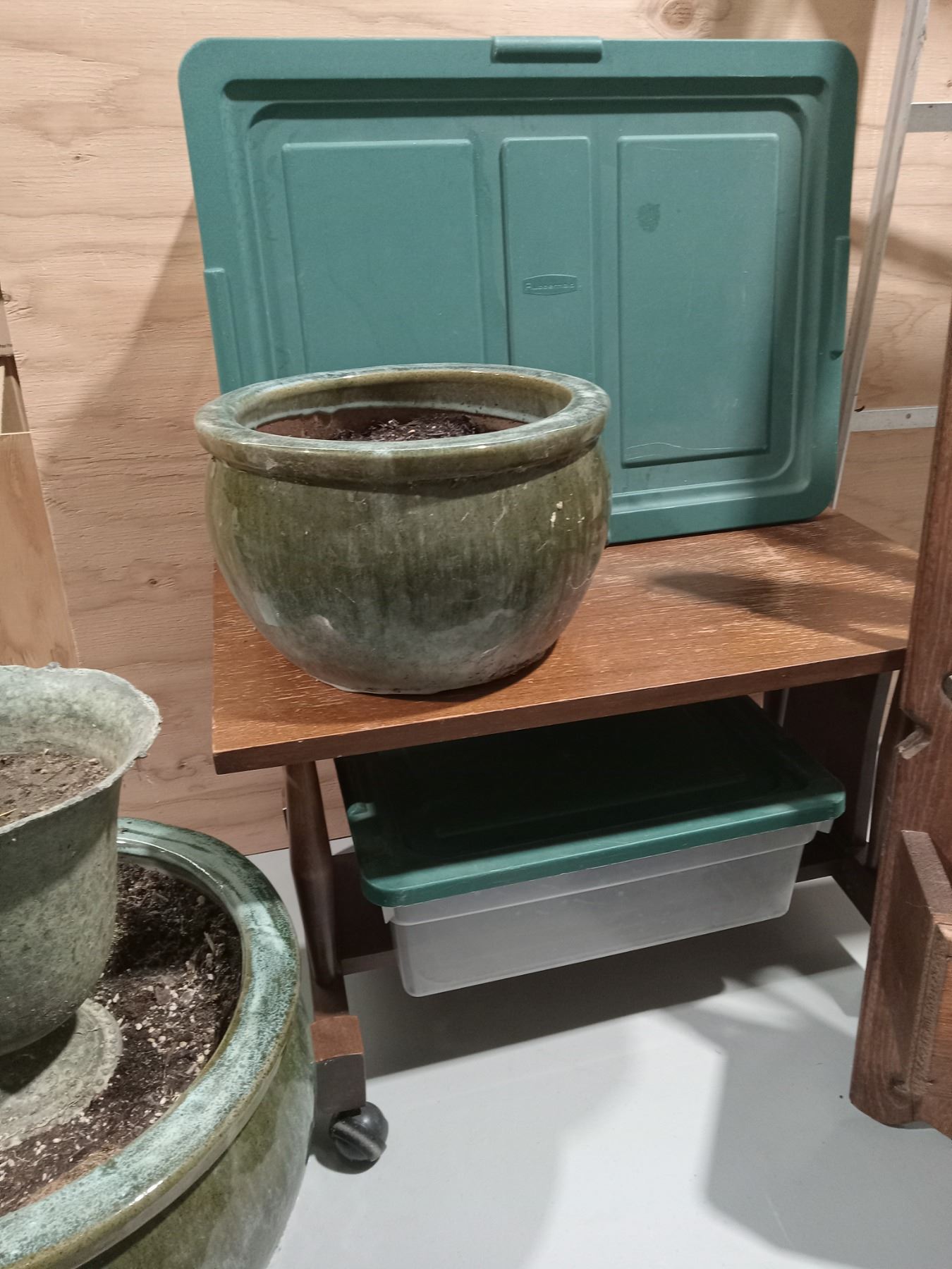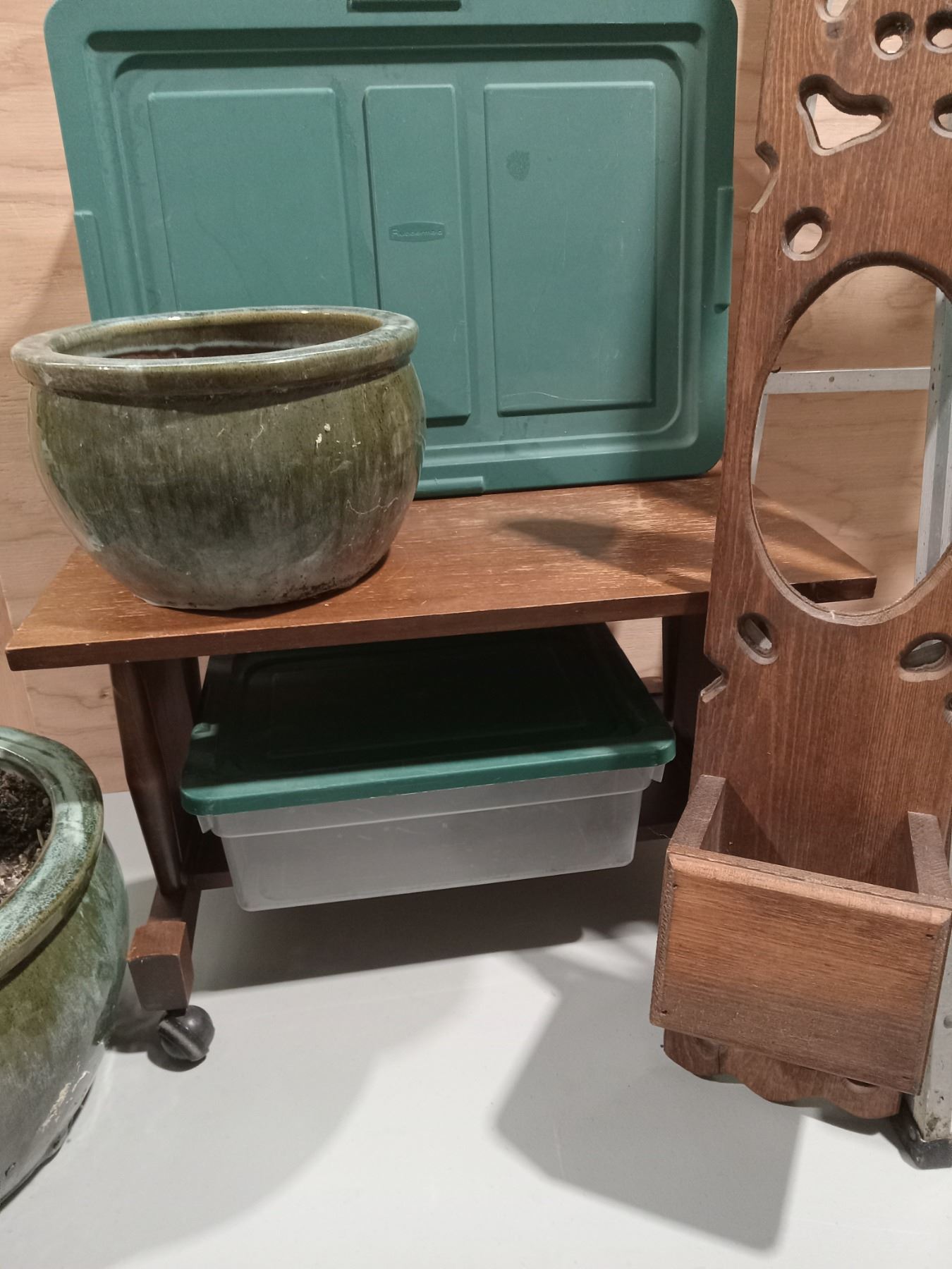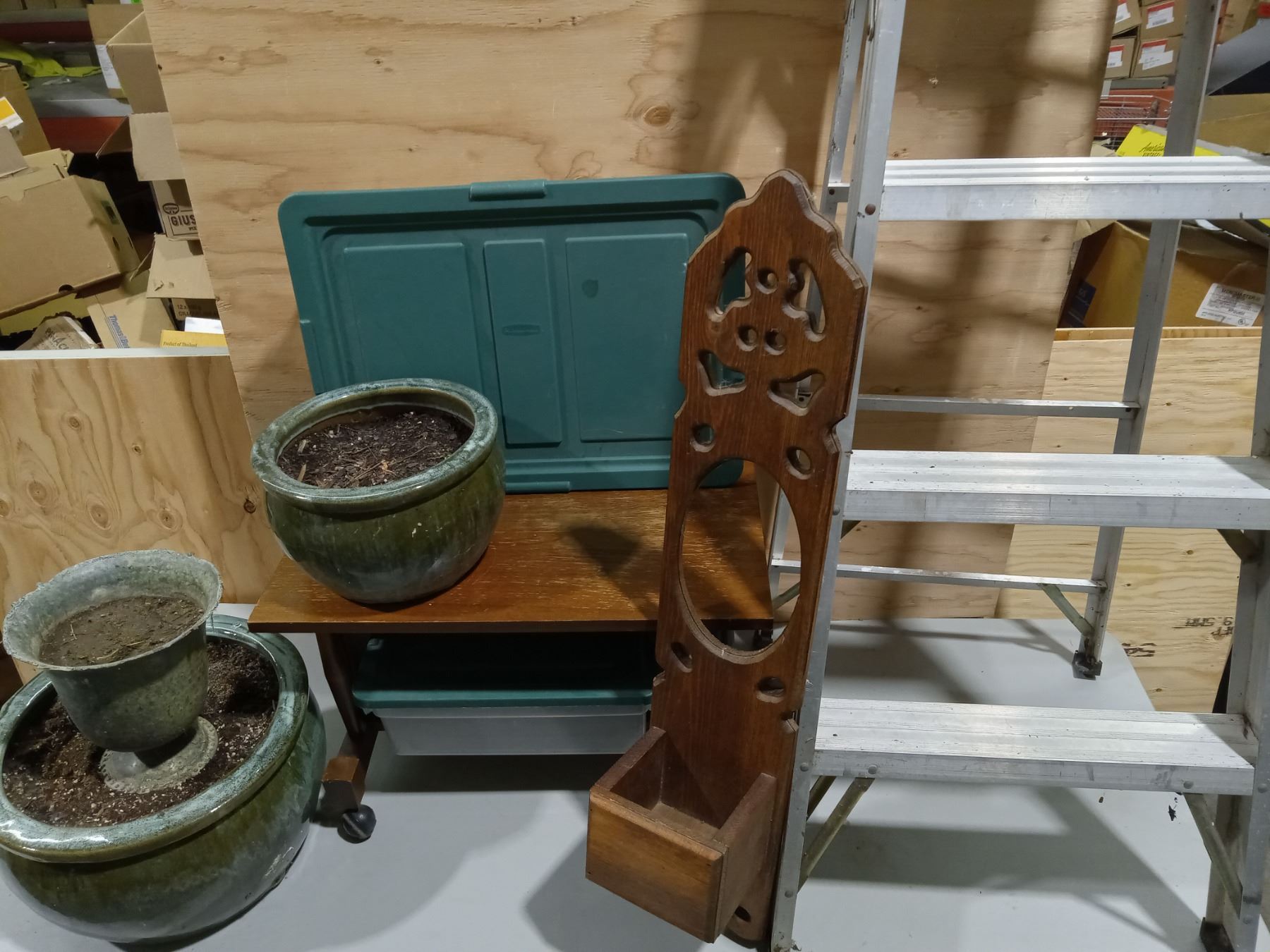 LADDER 6FT.; CERAMIC PLANTERS; STAND & CONTAINERS.