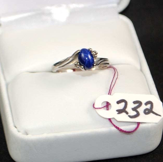 LADIES STAMPED 10K YELLOW GOLD FASHION RING WITH ONE 4-PRONG SET, CABOCHON CUT STAR SAPPHIRE THAT MEASURES 6.80 X .75MM, AA QUALITY. AND TWO PRONG SET, SINGLE CUT DIAMOND ACCENTS THAT WEIGH 0.02CTW, SI