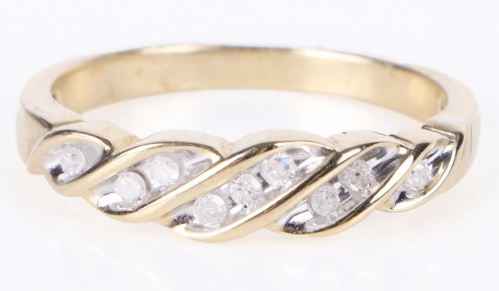 0.09 ctw. Diamond 10 karat Yellow Gold Ring. To feature spiral design.